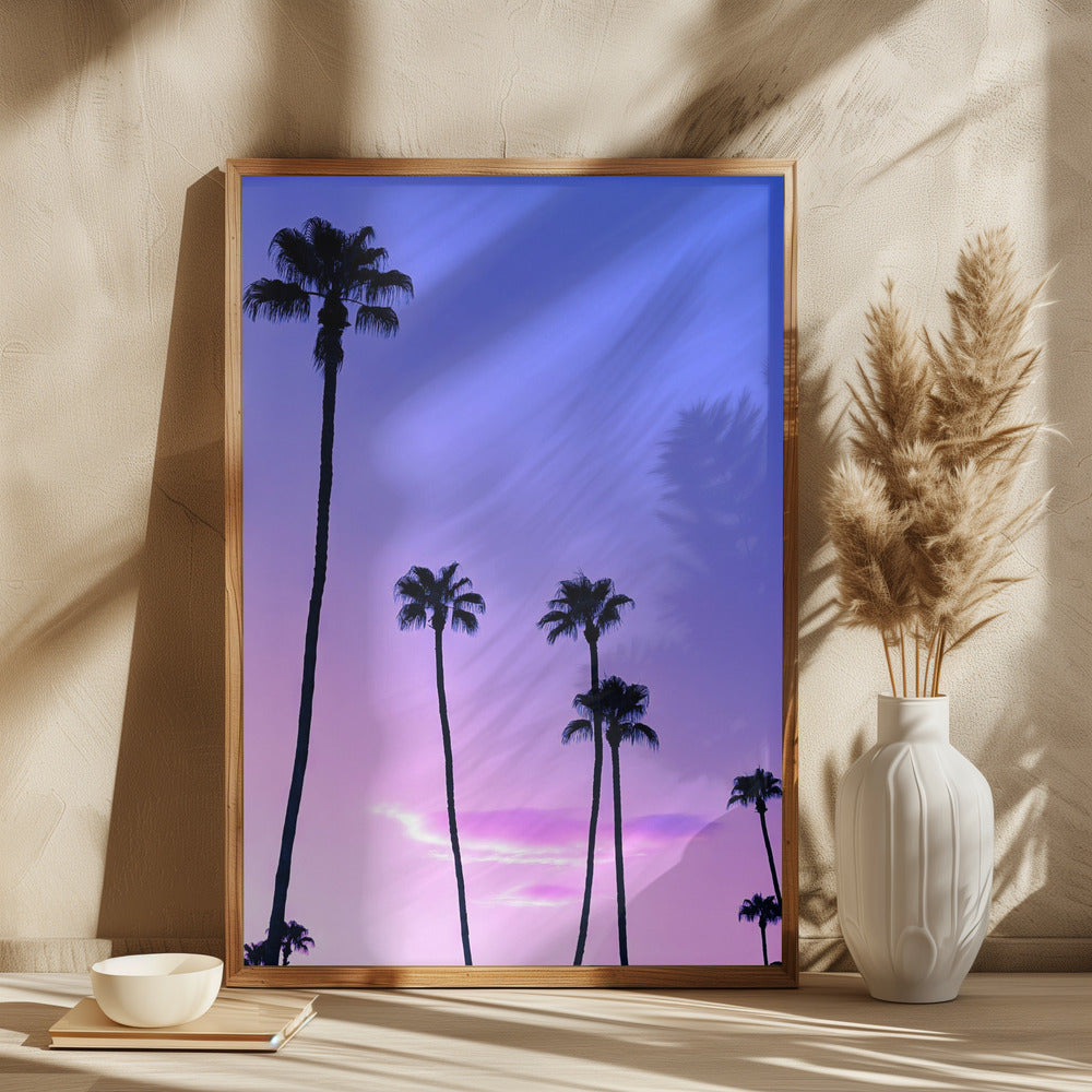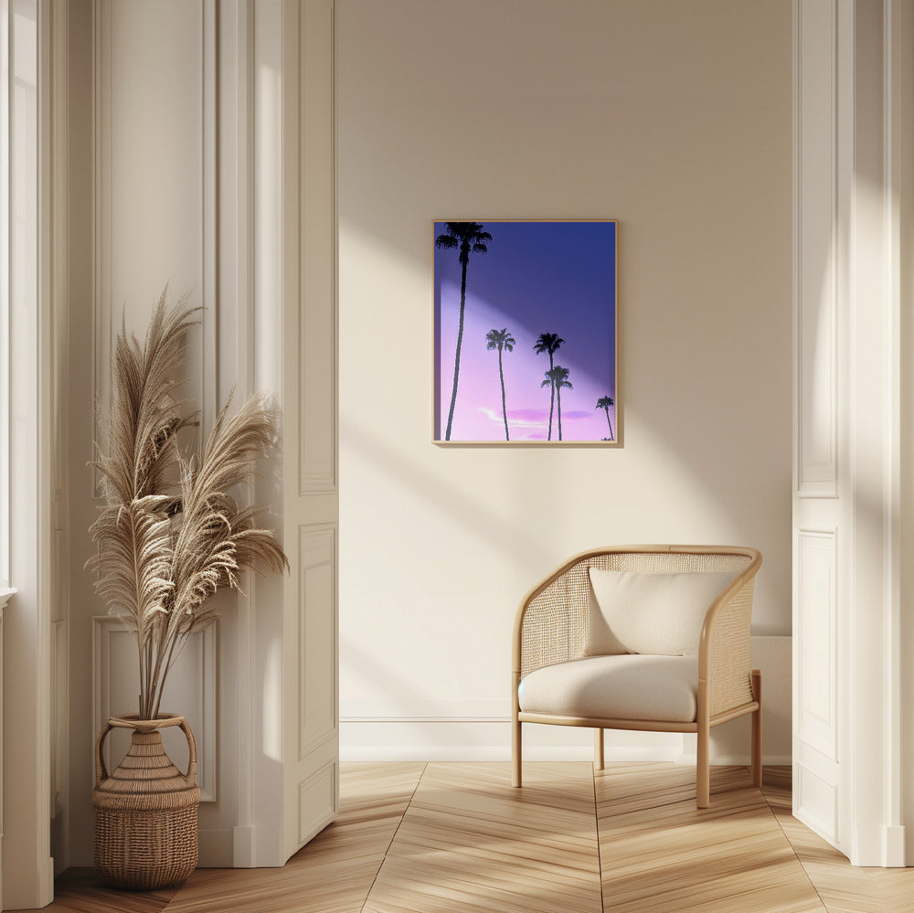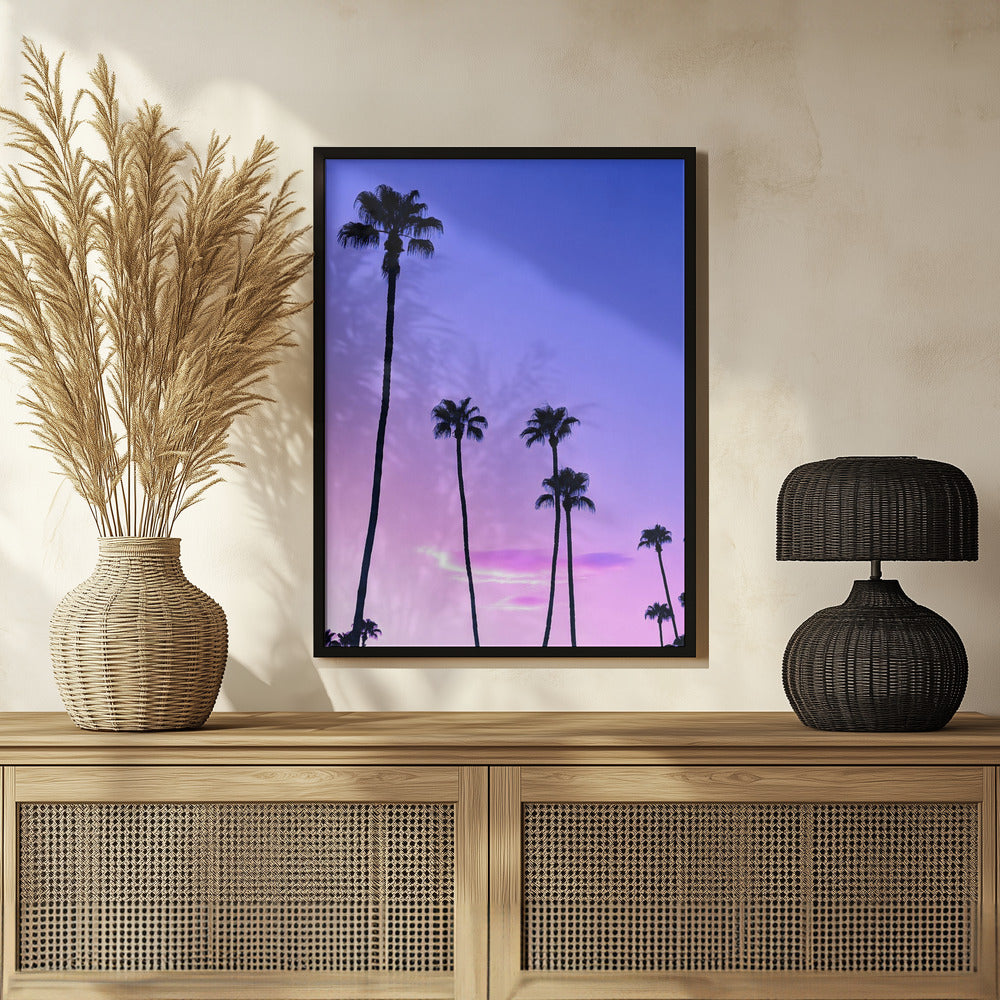 Palmeras y un atardecer rosa · cuadro de decoración