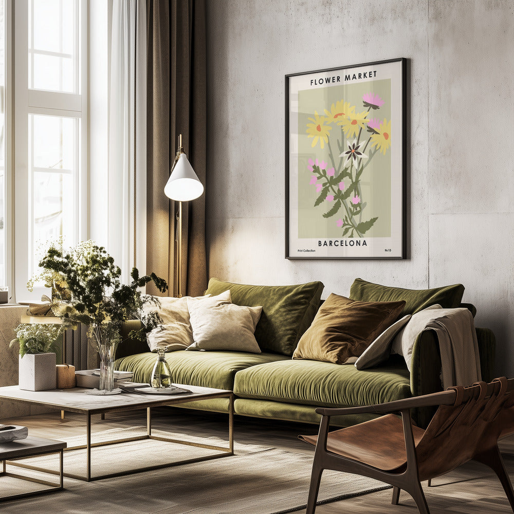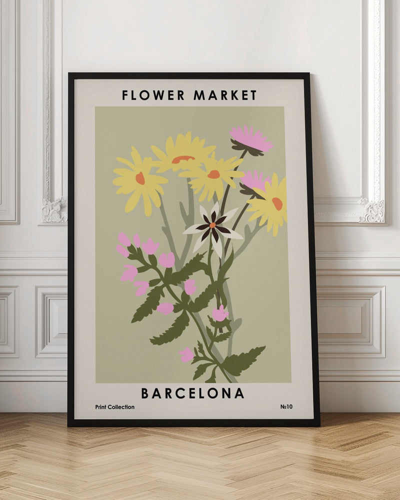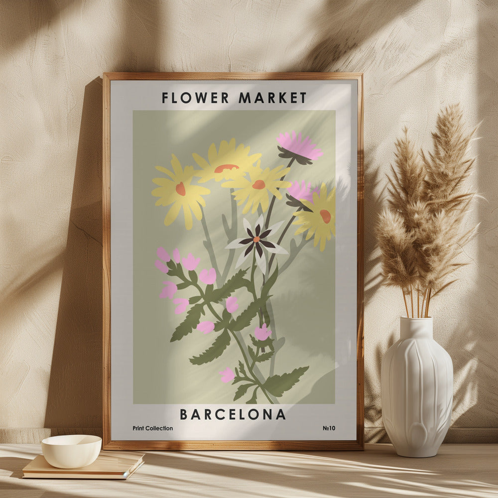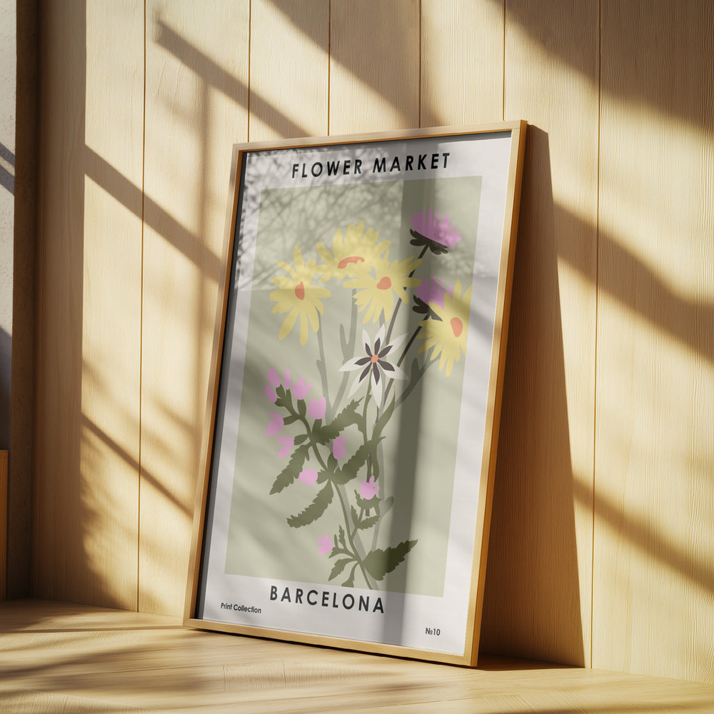 "Flower Market Barcelona" por NKTN. Impreso en papel mate de primera calidad, lienzo o papel de calidad de museo. Elija entre un marco de madera opcional.