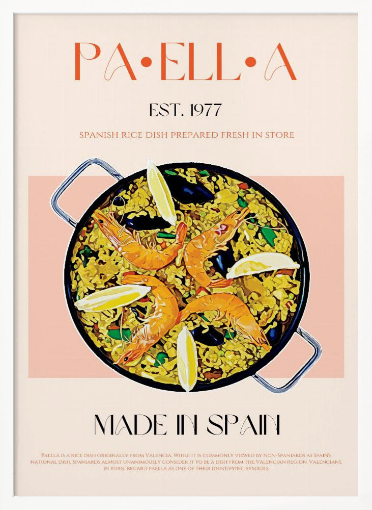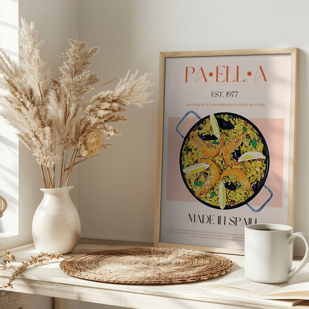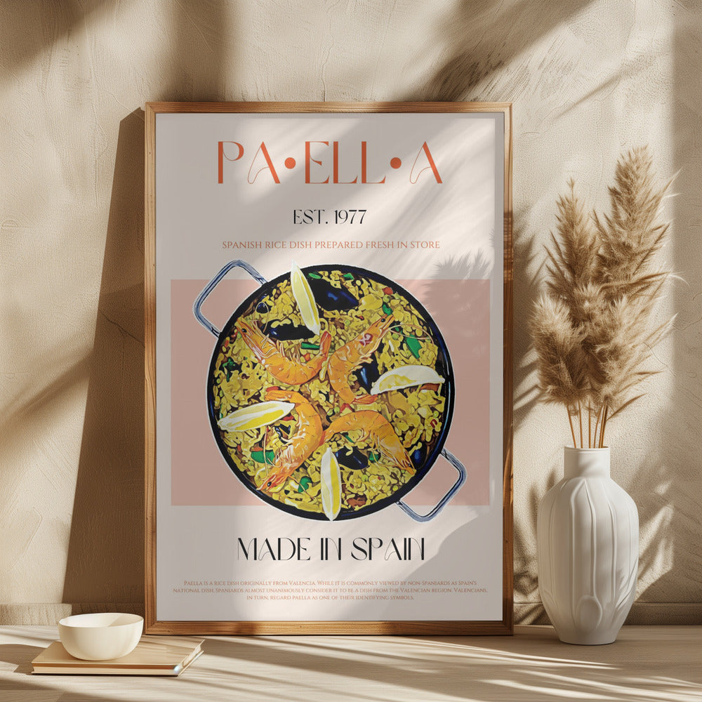 "Paella Perfection" por Nazma Khokhar. Impreso en papel mate de primera calidad, lienzo o papel de calidad de museo. Elija entre un marco de madera opcional.