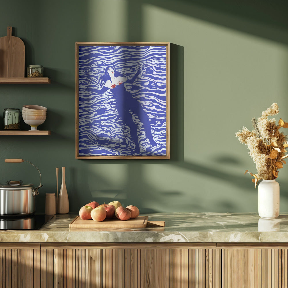 Dama flotando en el mar espumoso · cuadro de decoración