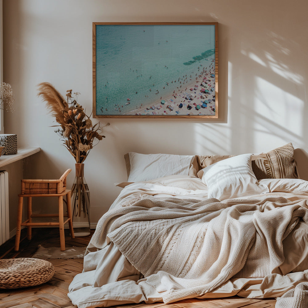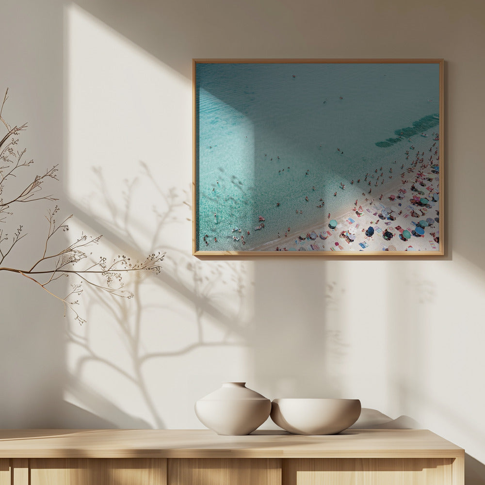 "Busy Beach" por Kathrin Pienaar. Impreso en papel mate de primera calidad, lienzo o papel de calidad de museo. Elija entre un marco de madera opcional.