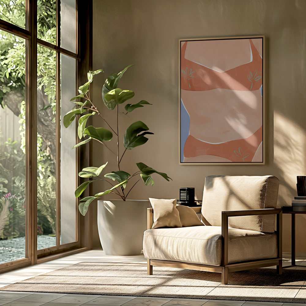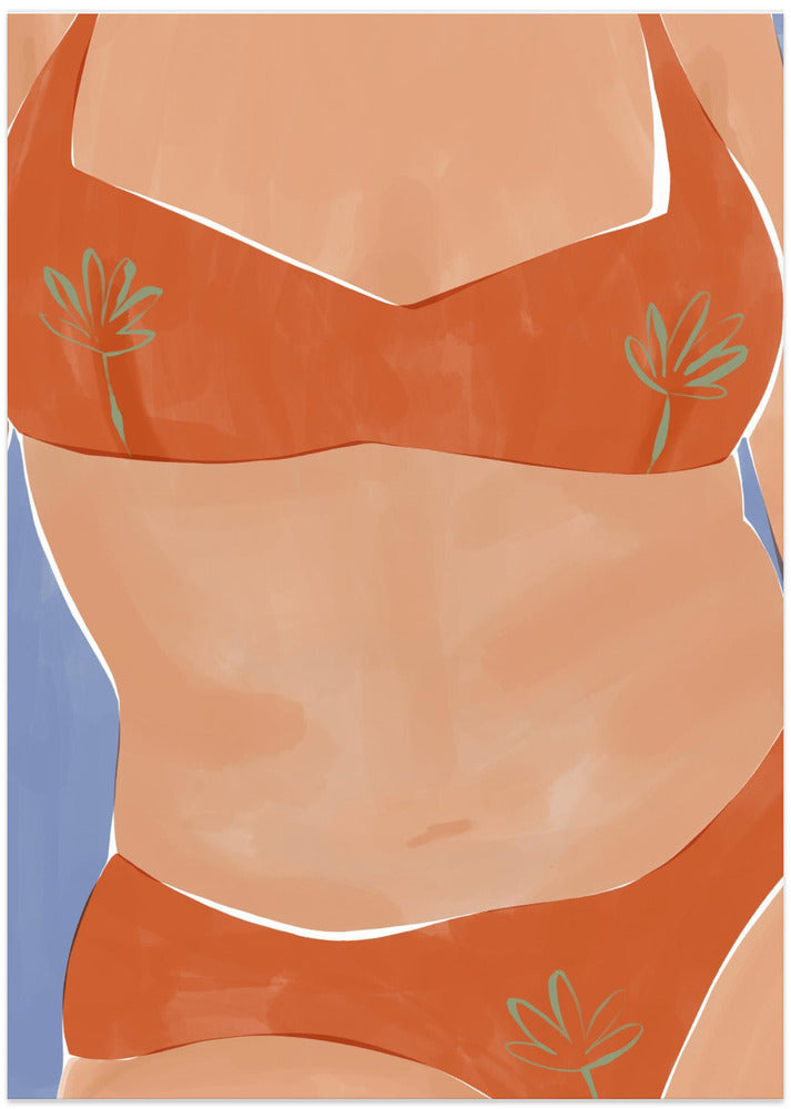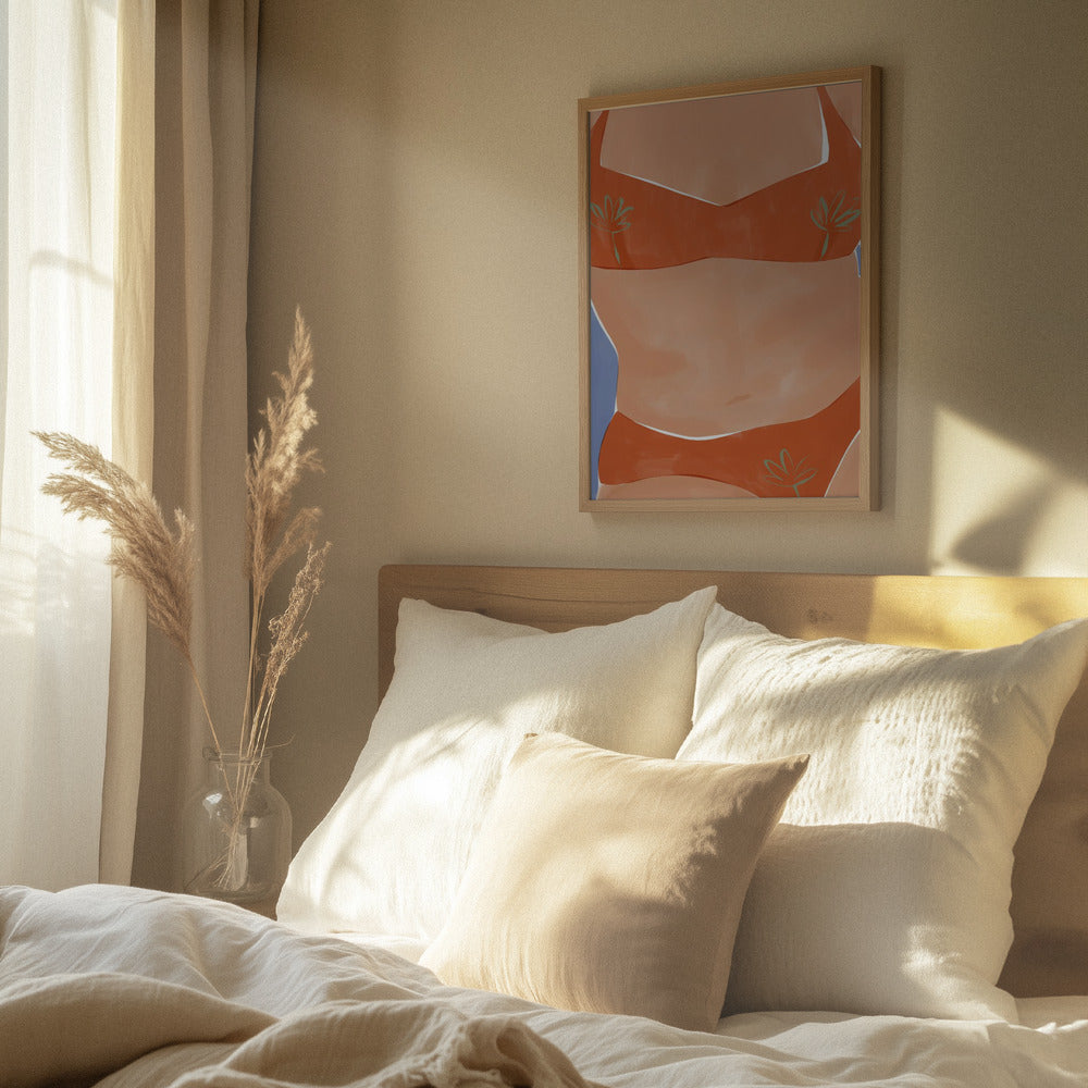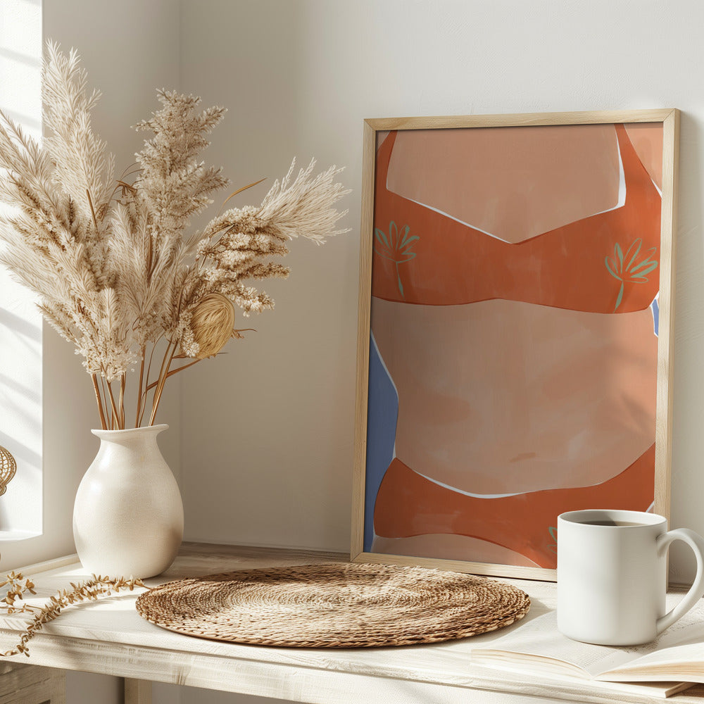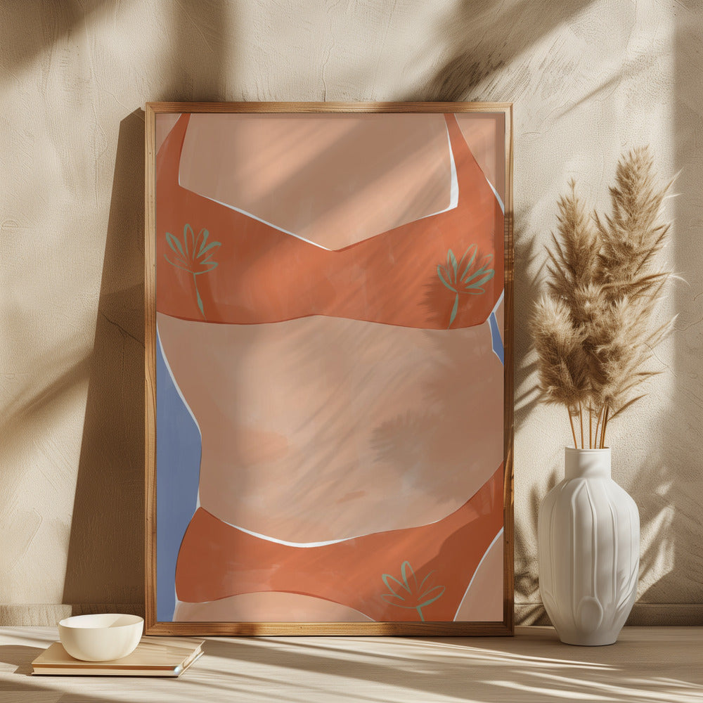 "Bikini Babe" por Ivy Green Illustrations. Impreso en papel mate de primera calidad, lienzo o papel de calidad de museo. Elija entre un marco de madera opcional.