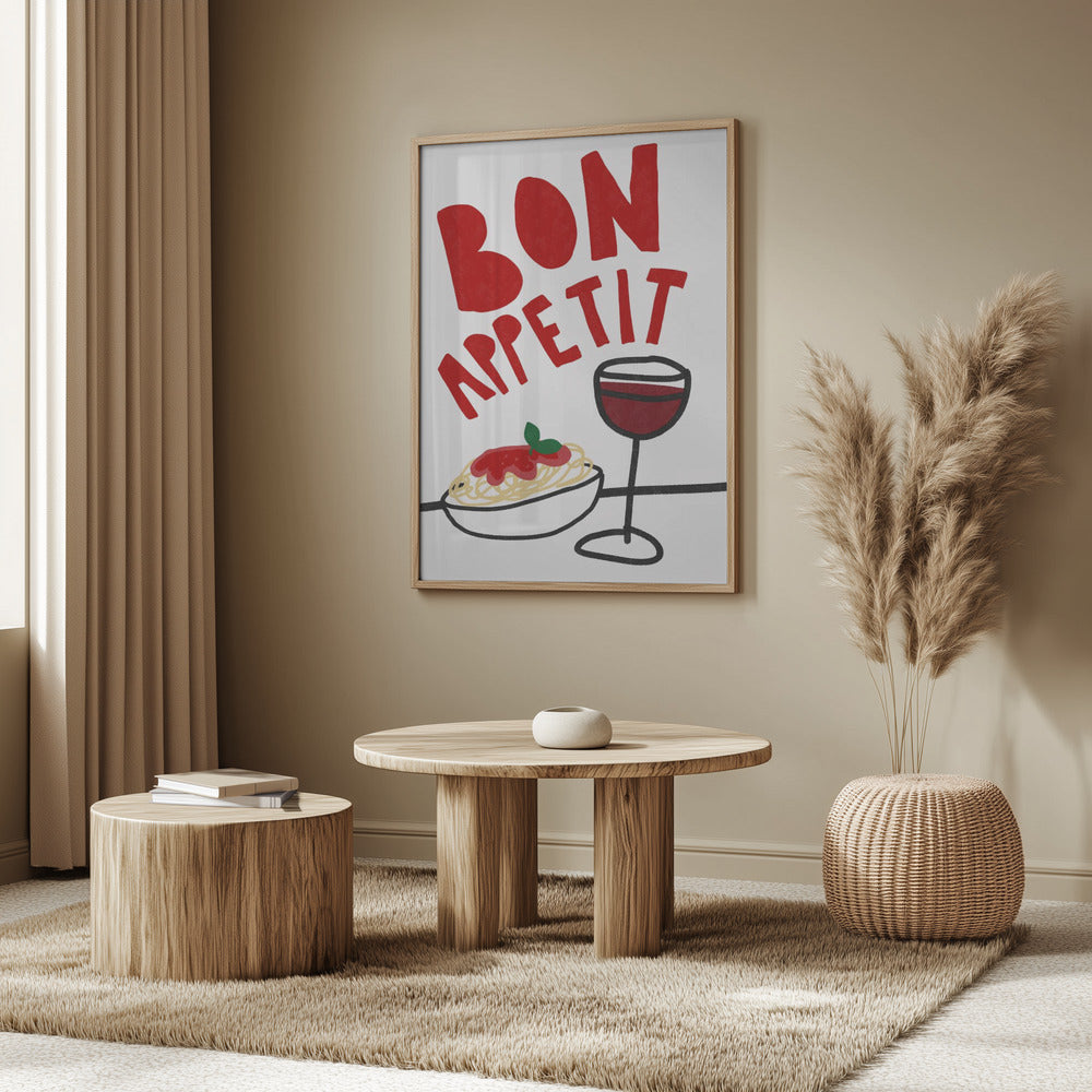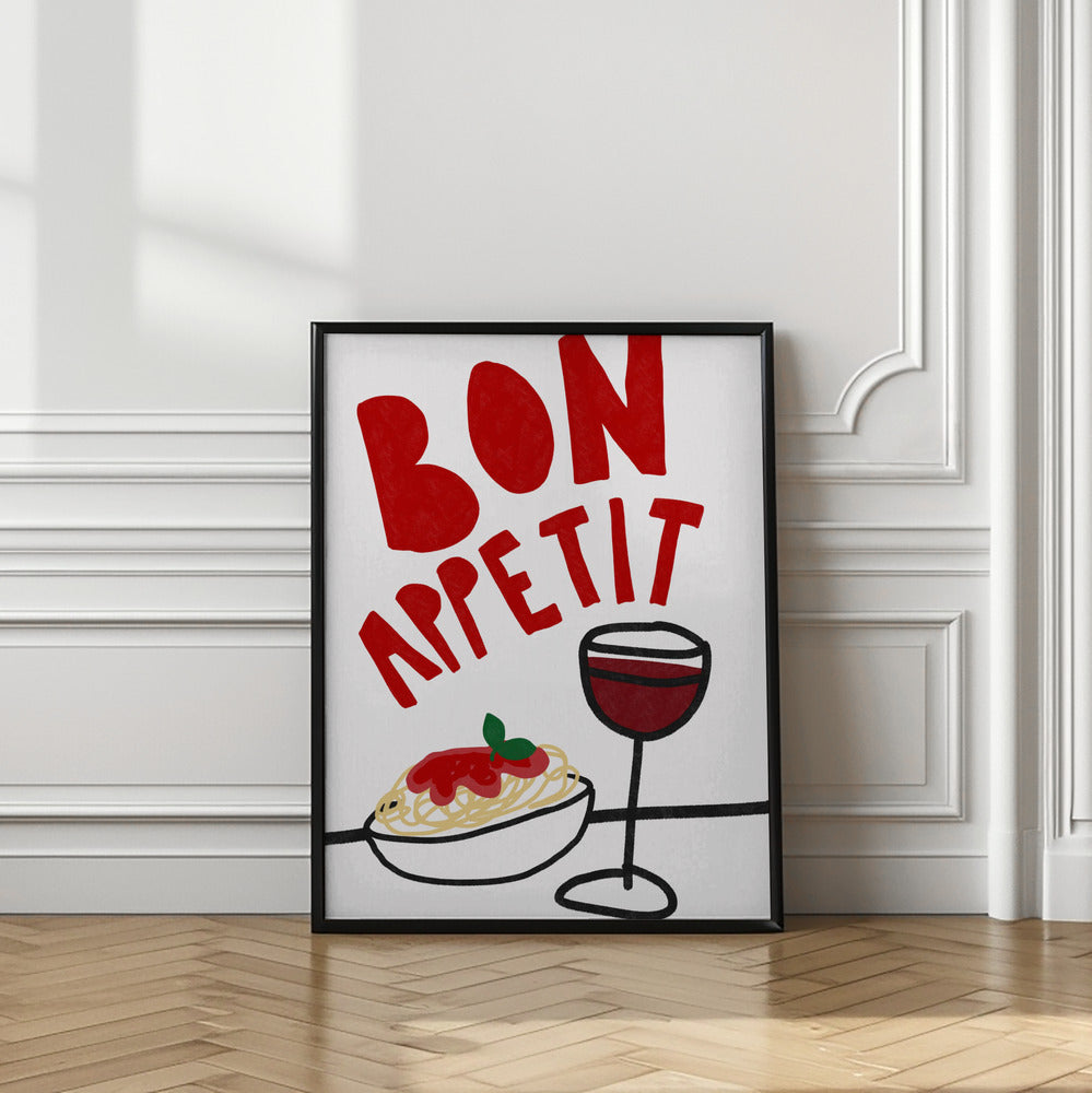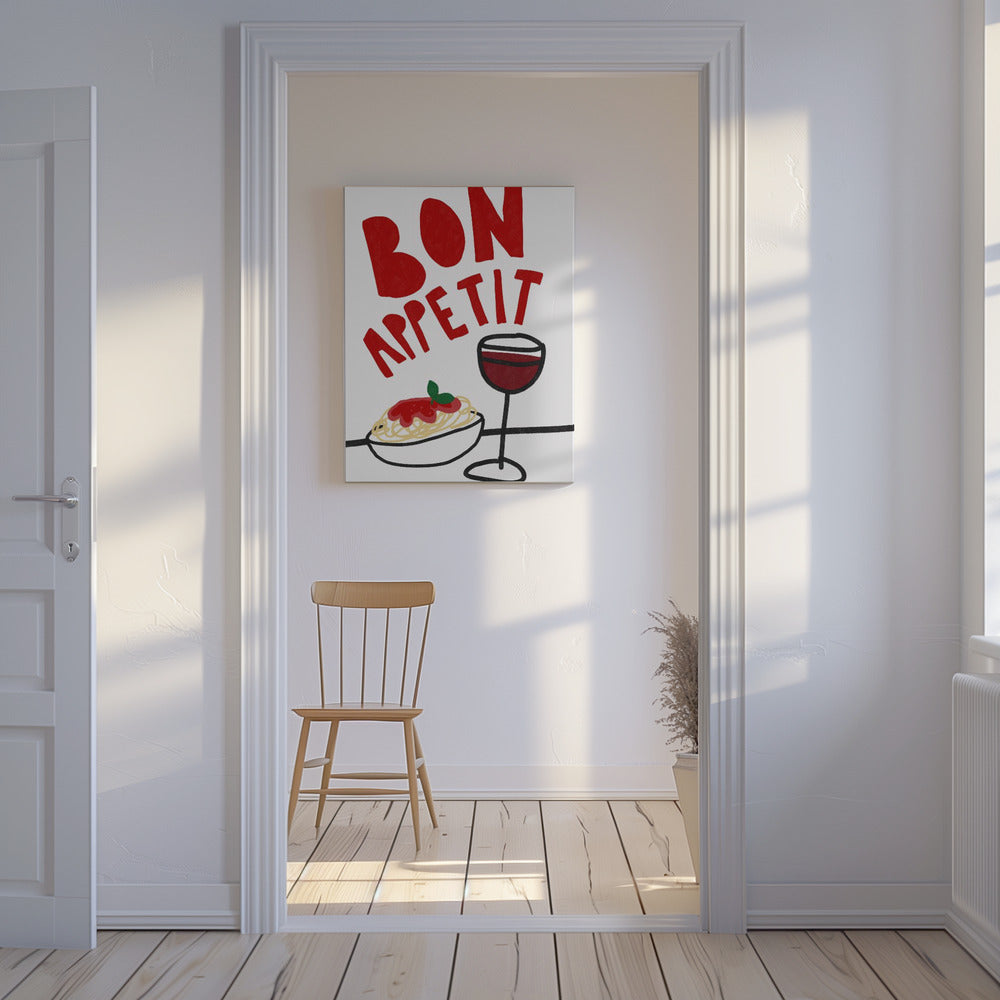 Buen provecho espaguetis y vino · cuadro de decoración