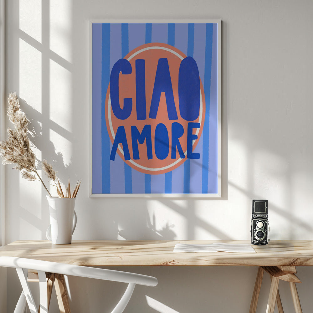 Ciao amore sobre fondo azul rayado · cuadro de decoración