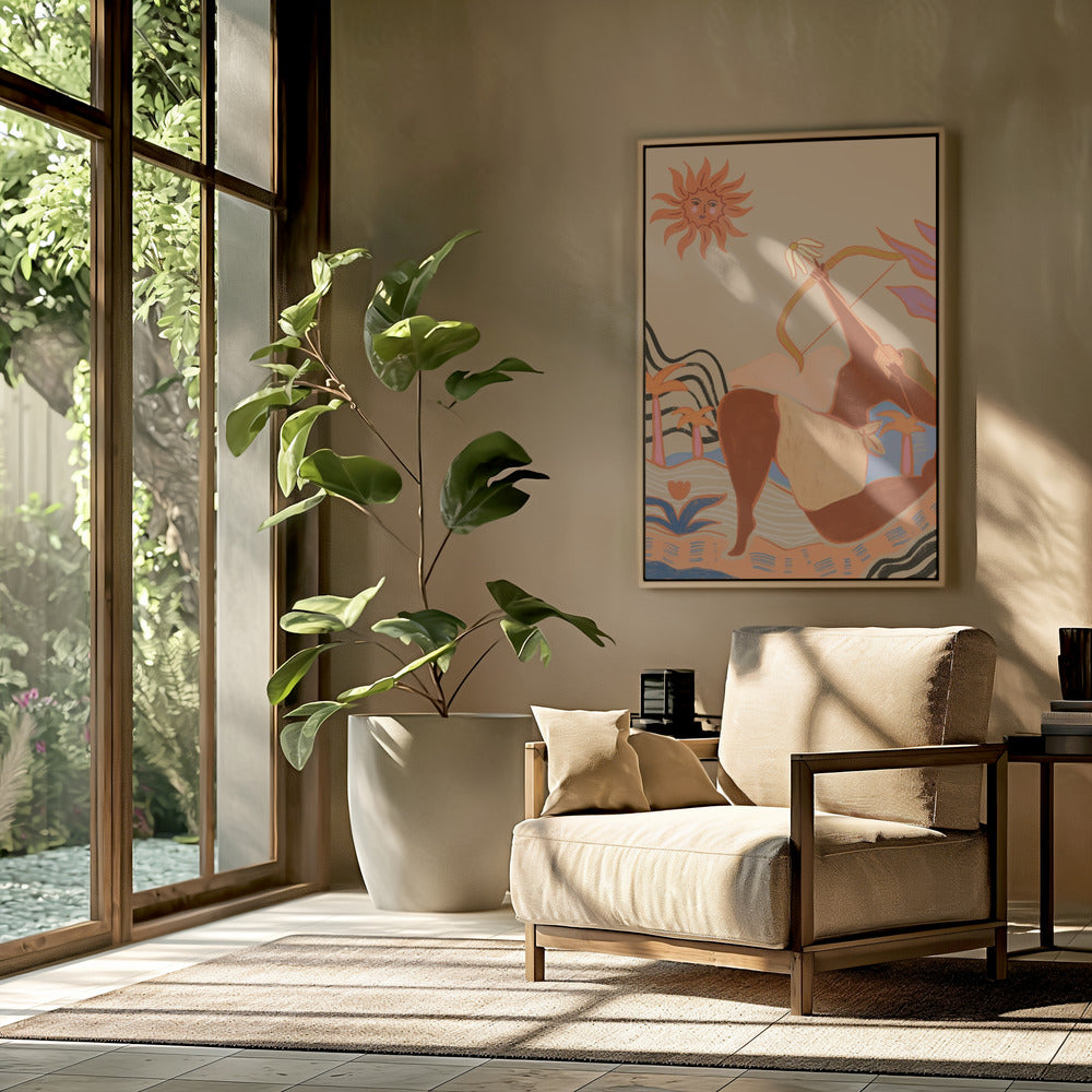 Imprimimos directamente en un lienzo de mezcla de algodón y poliéster de 300 g/m² de primera calidad. Luego, lo estiramos sobre un marco de 2 cm de grosor. Cada lienzo incluye un kit para colgarlo.