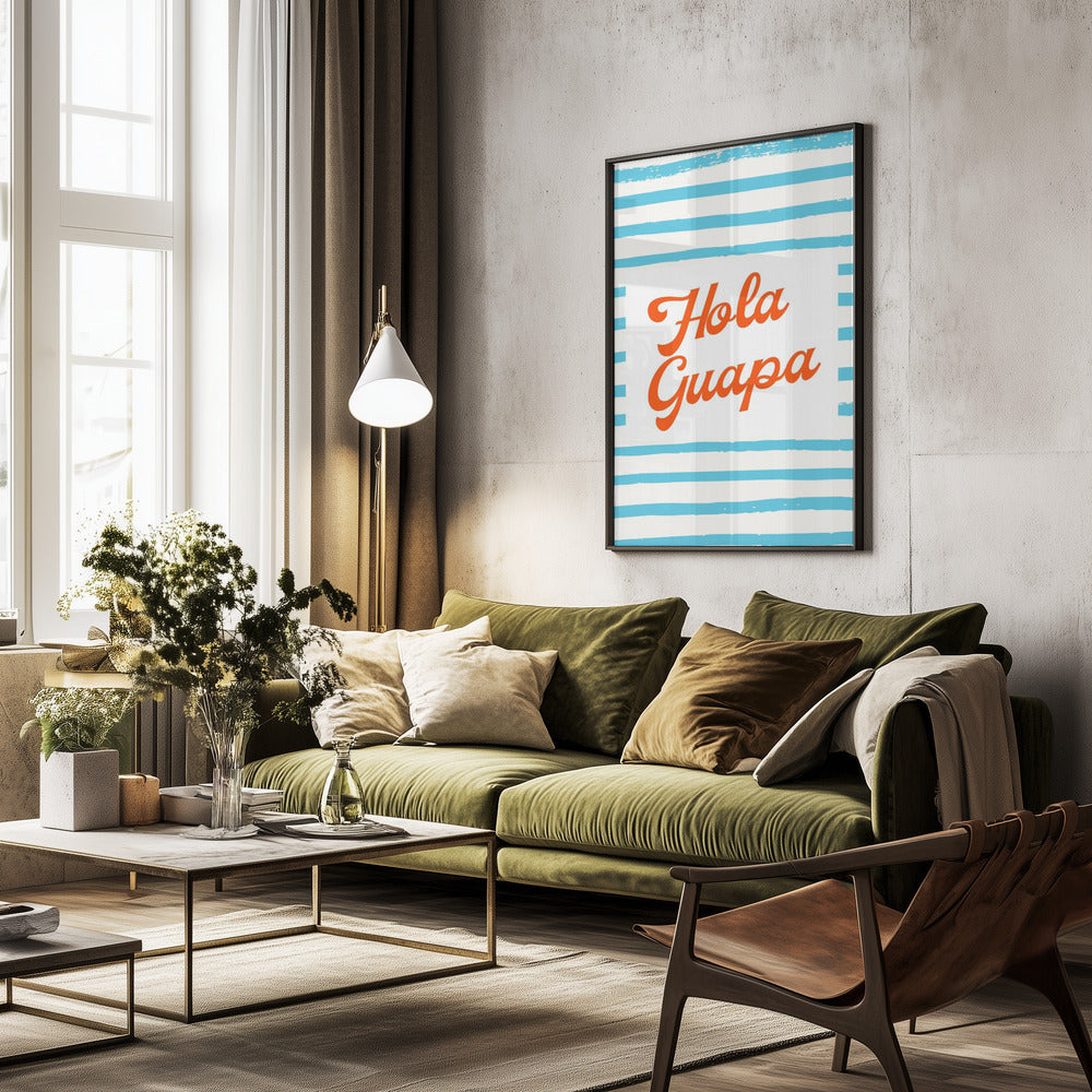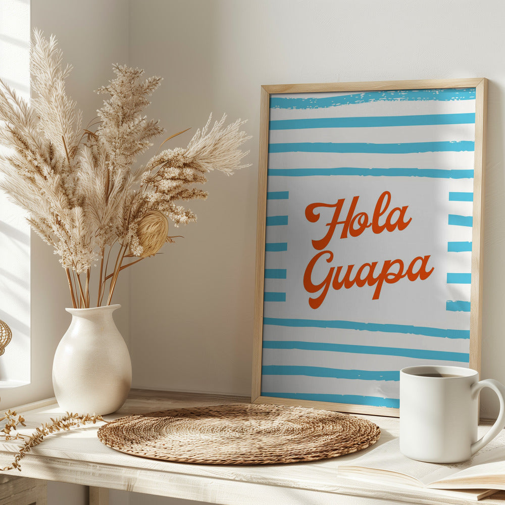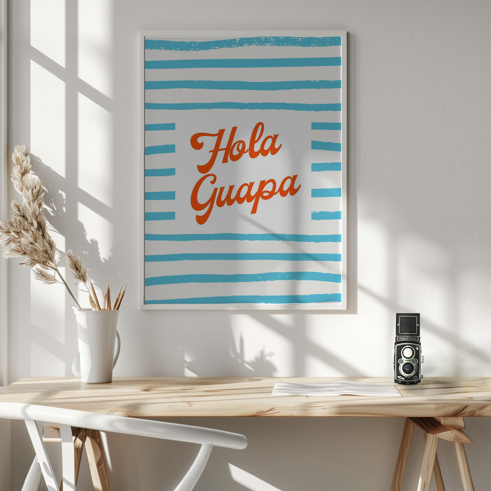 Hola Guapa en azul rayado · cuadro de decoración