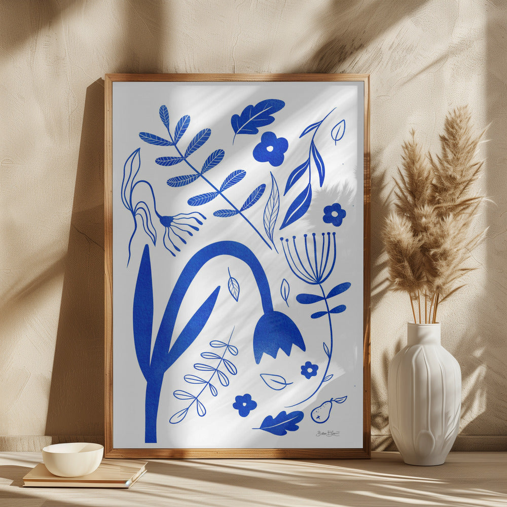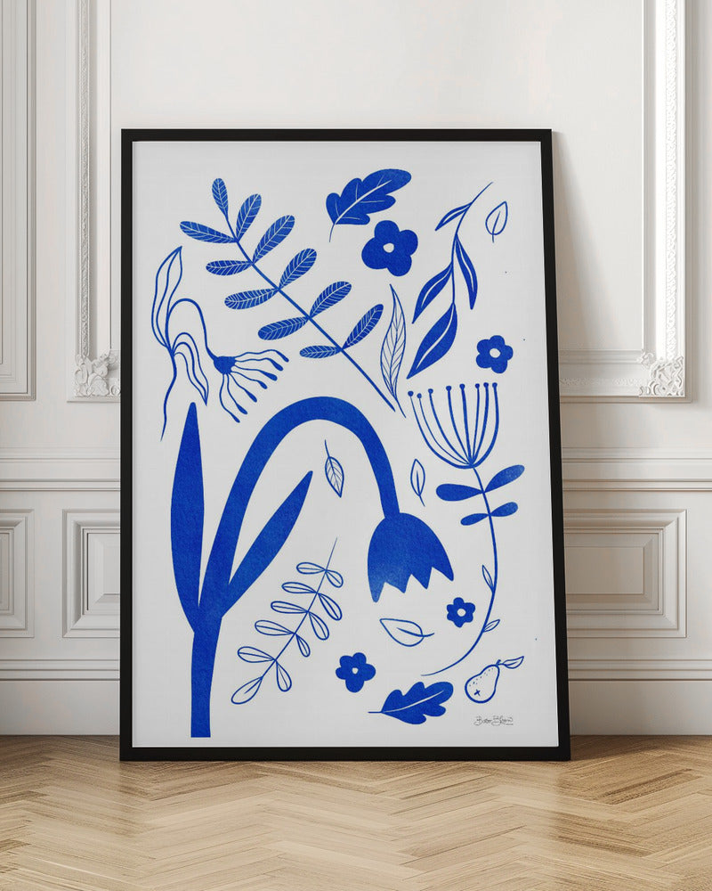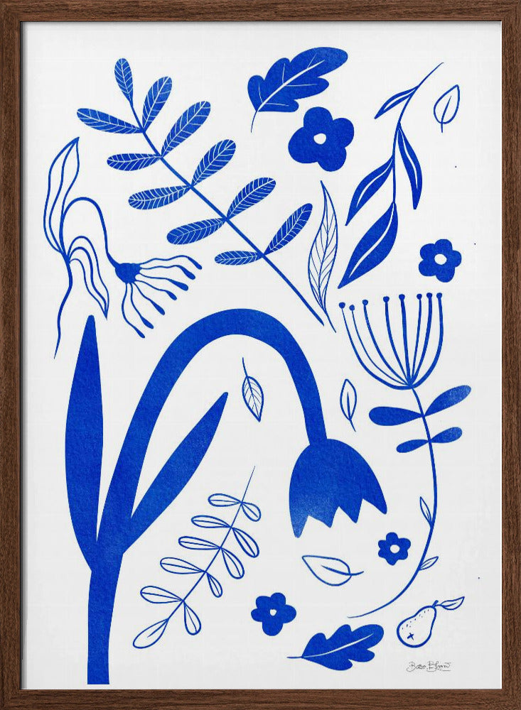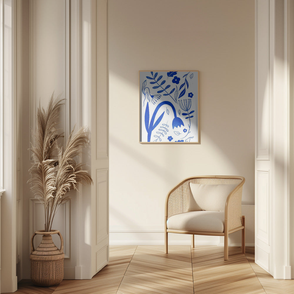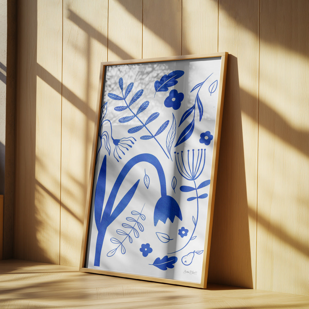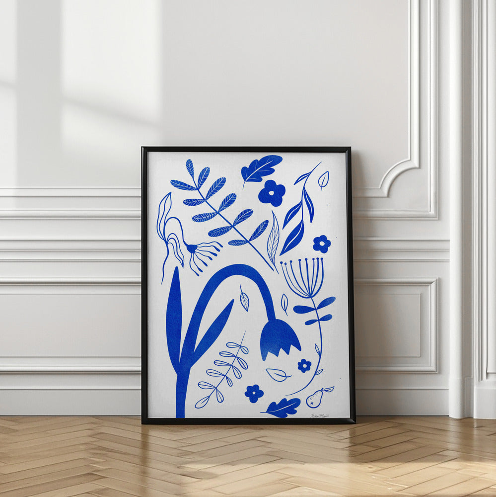 "Blue Flowers" por Baroo Bloom. Impreso en papel mate de primera calidad, lienzo o papel de calidad de museo. Elija entre un marco de madera opcional.