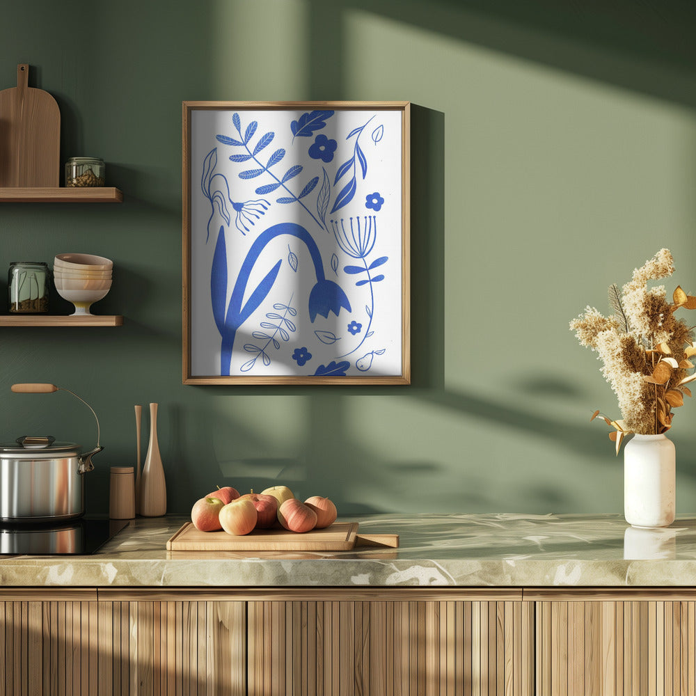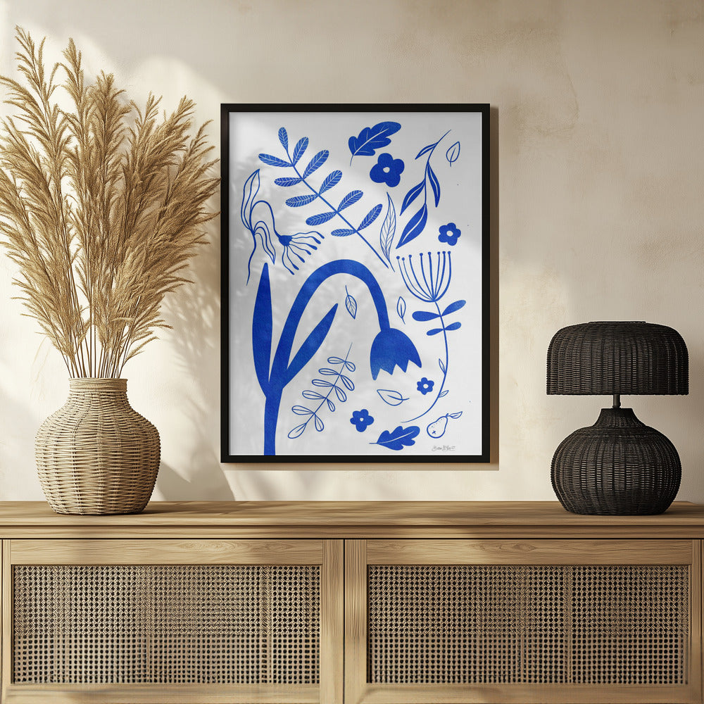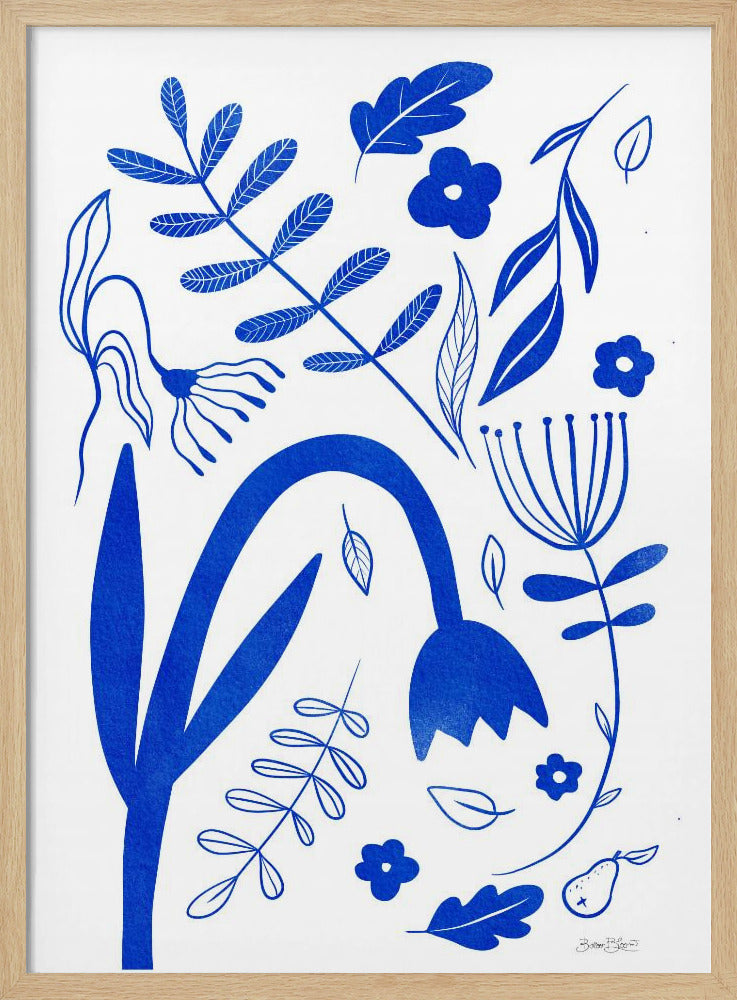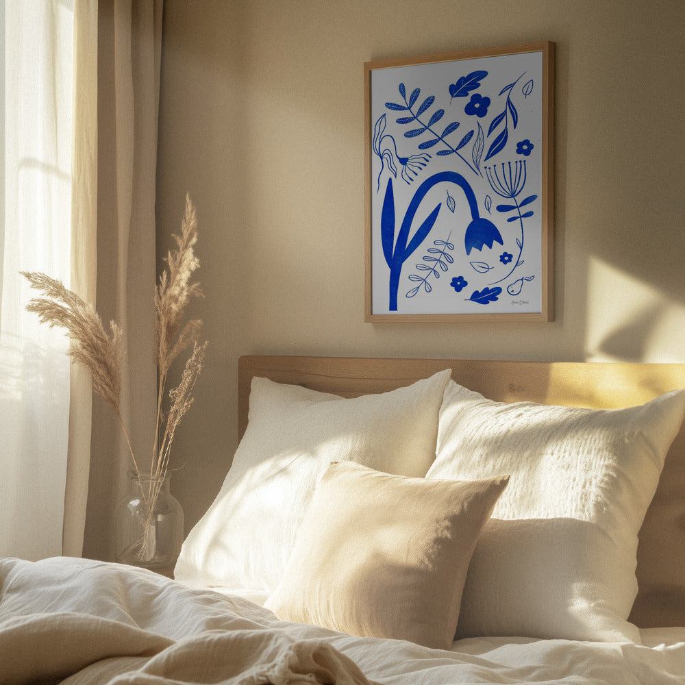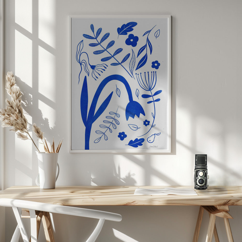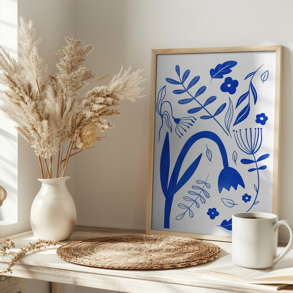 "Blue Flowers" por Baroo Bloom. Impreso en papel mate de primera calidad, lienzo o papel de calidad de museo. Elija entre un marco de madera opcional.