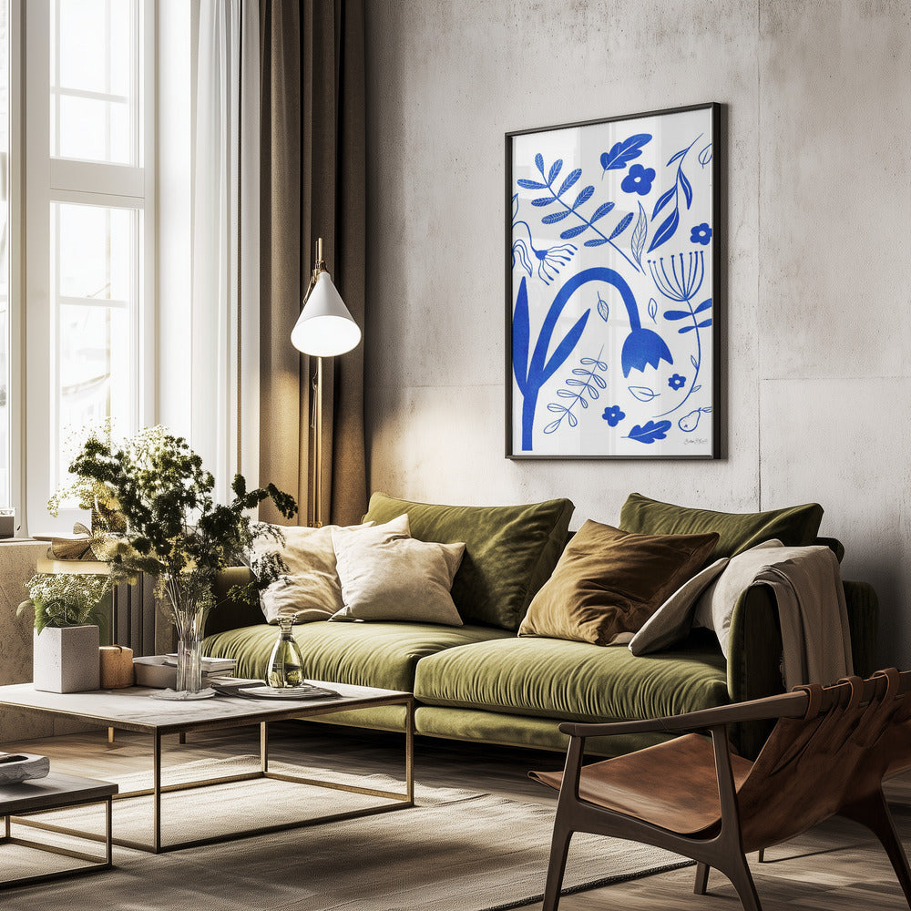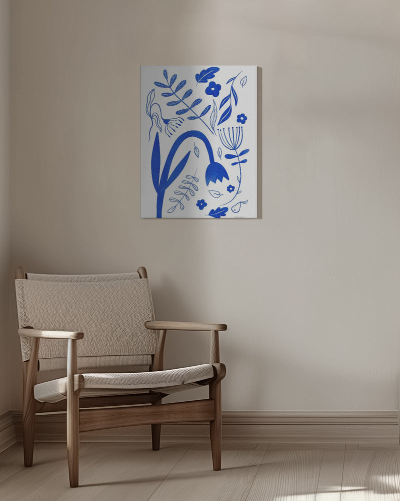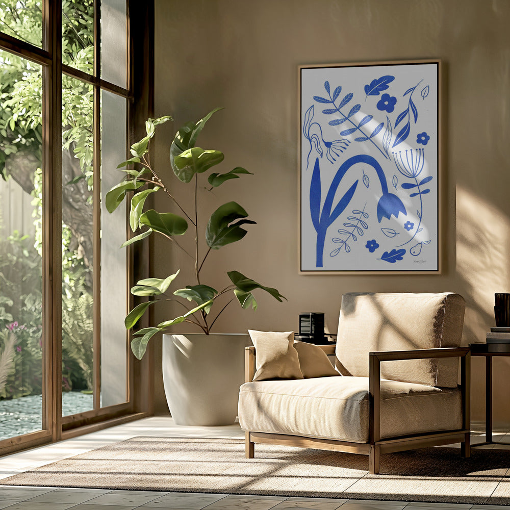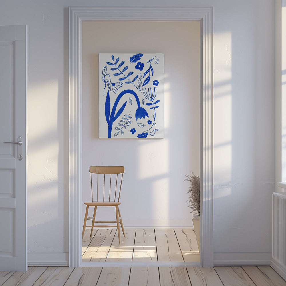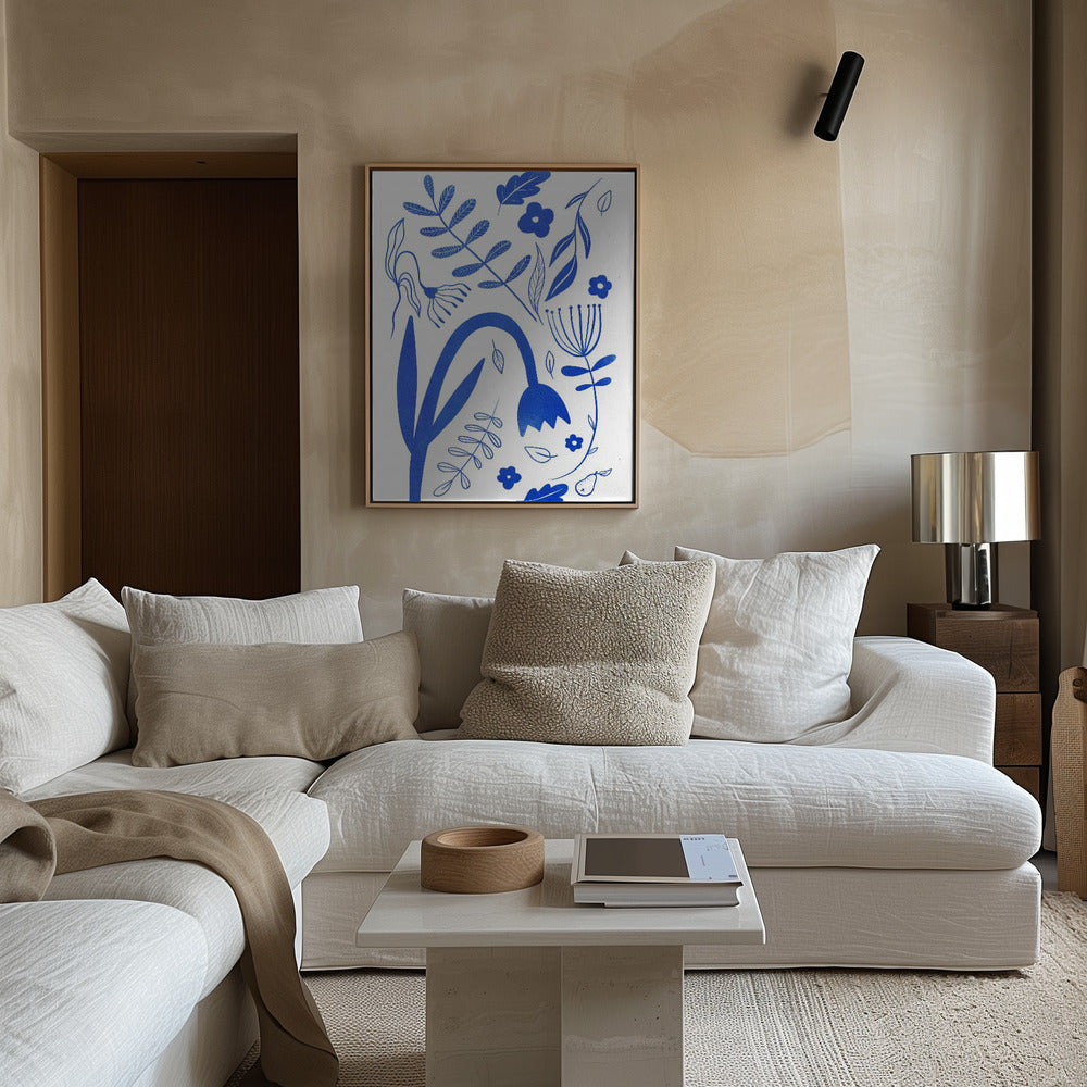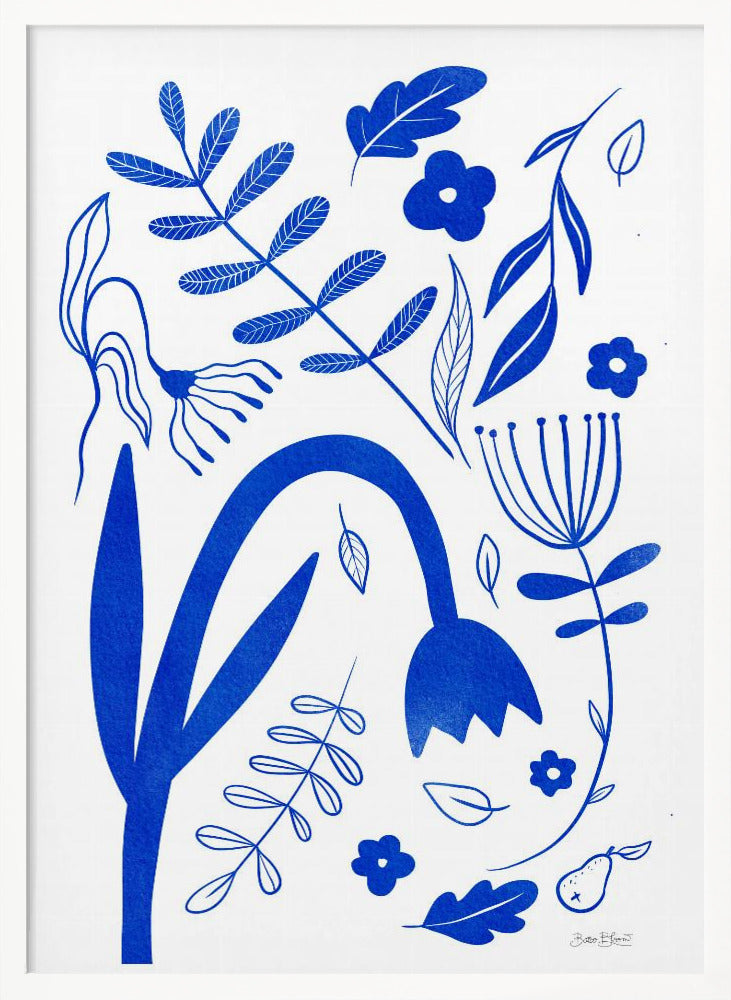 "Blue Flowers" por Baroo Bloom. Impreso en papel mate de primera calidad, lienzo o papel de calidad de museo. Elija entre un marco de madera opcional.