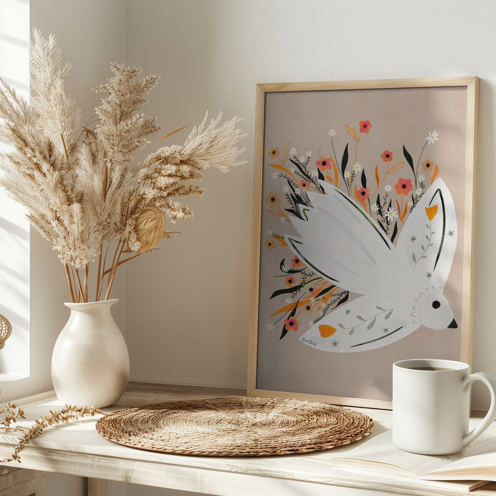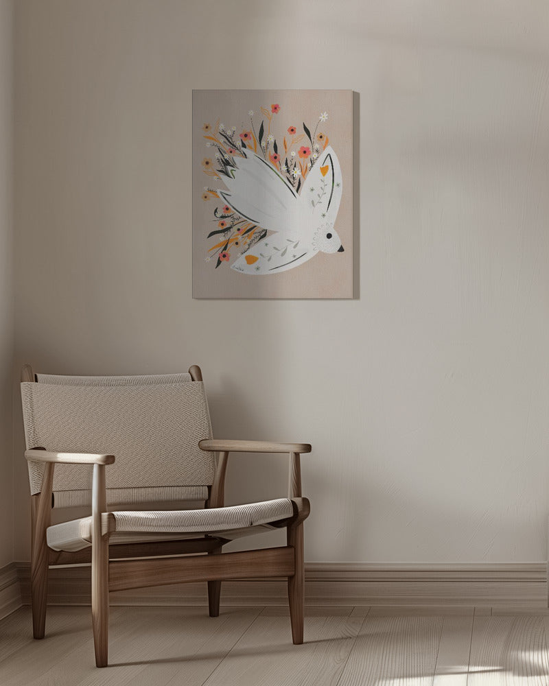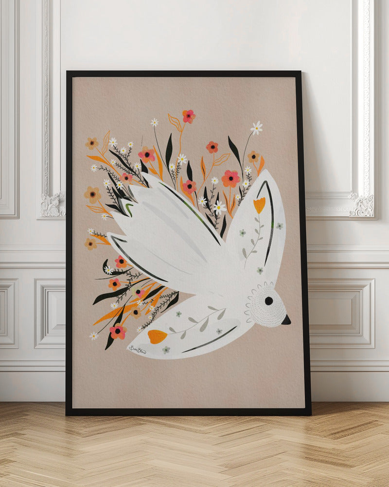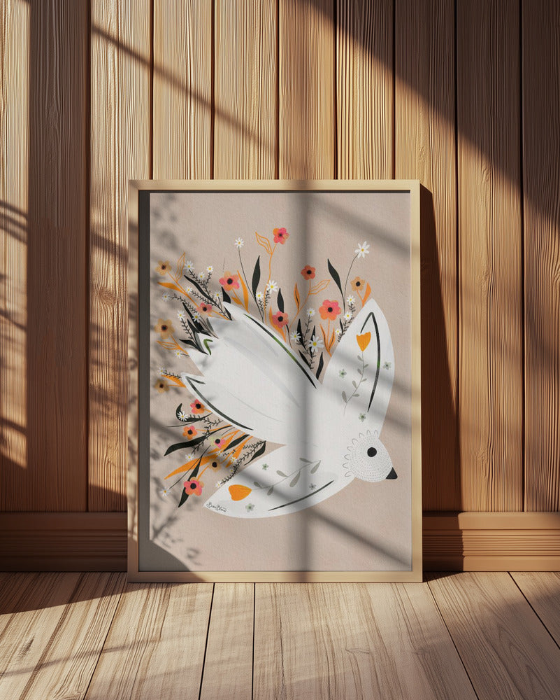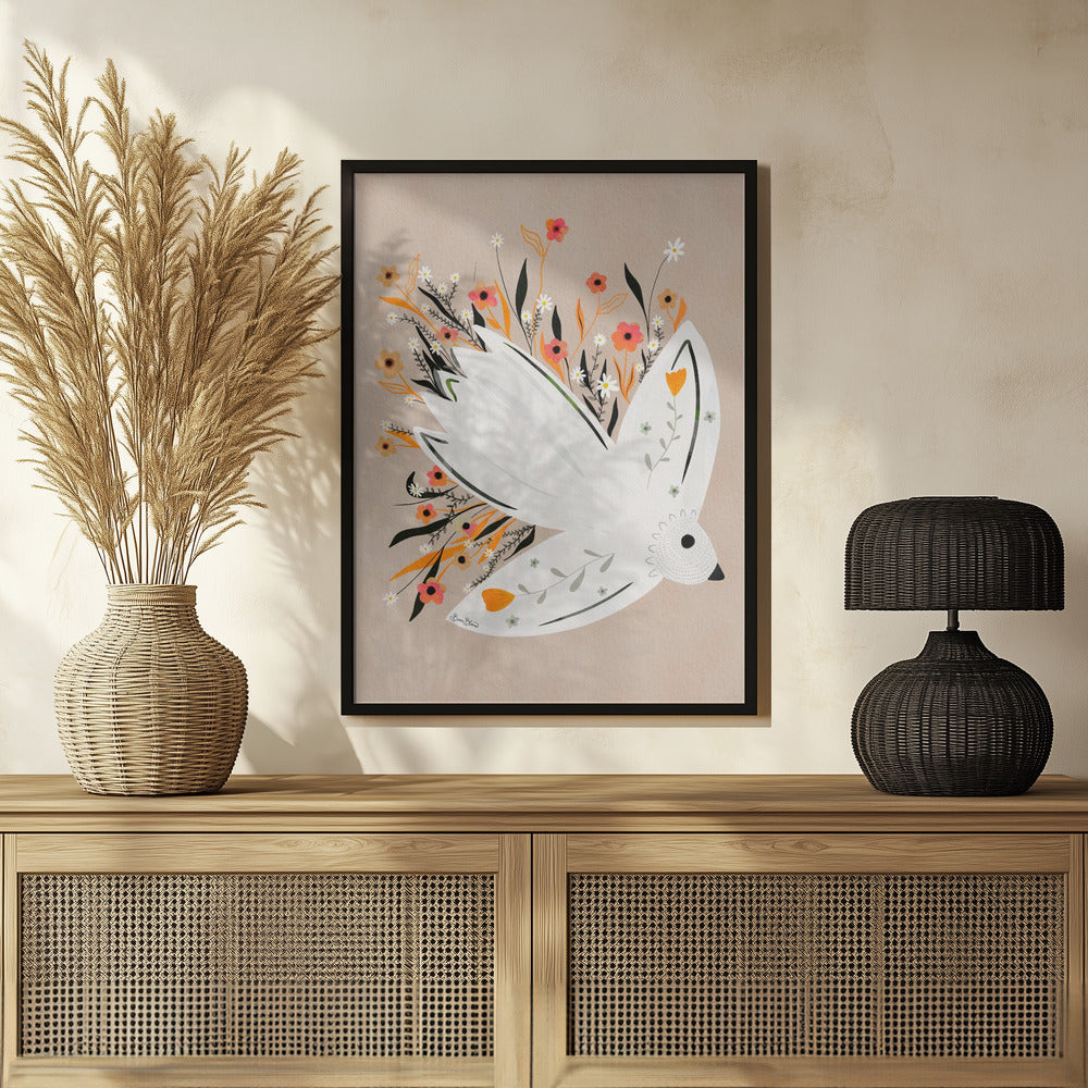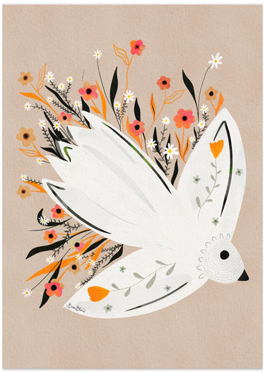 Ilustración de una gaviota entre flores · cuadro de decoración