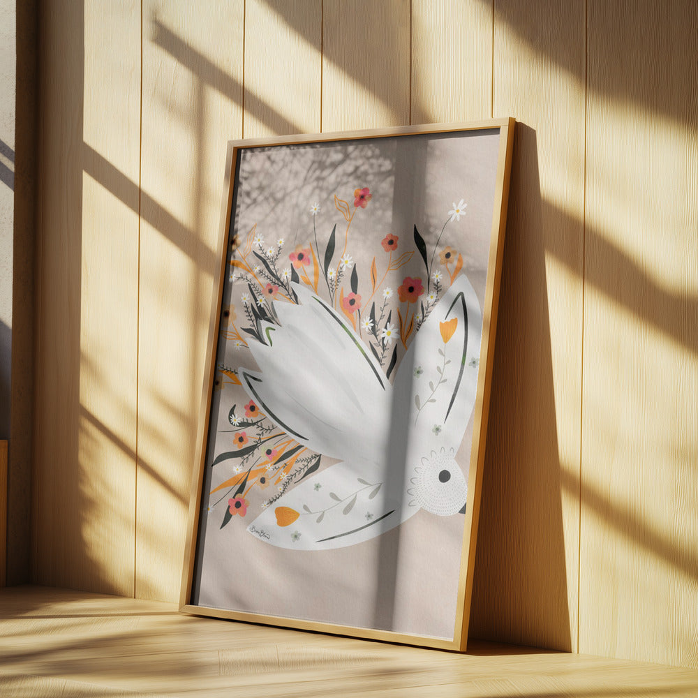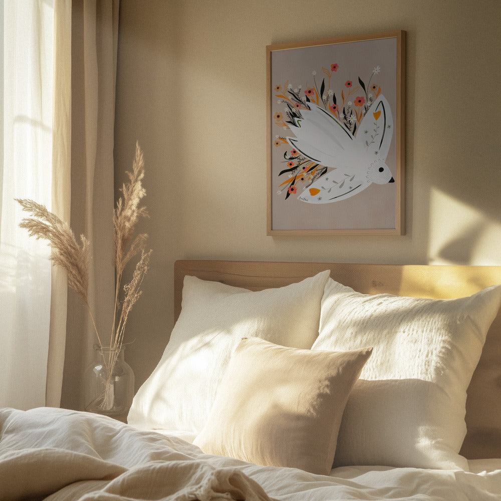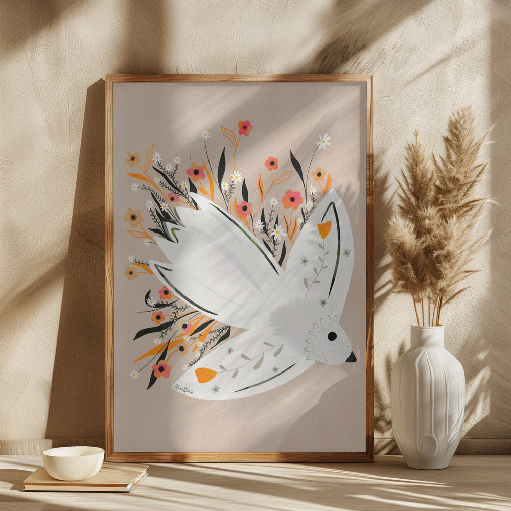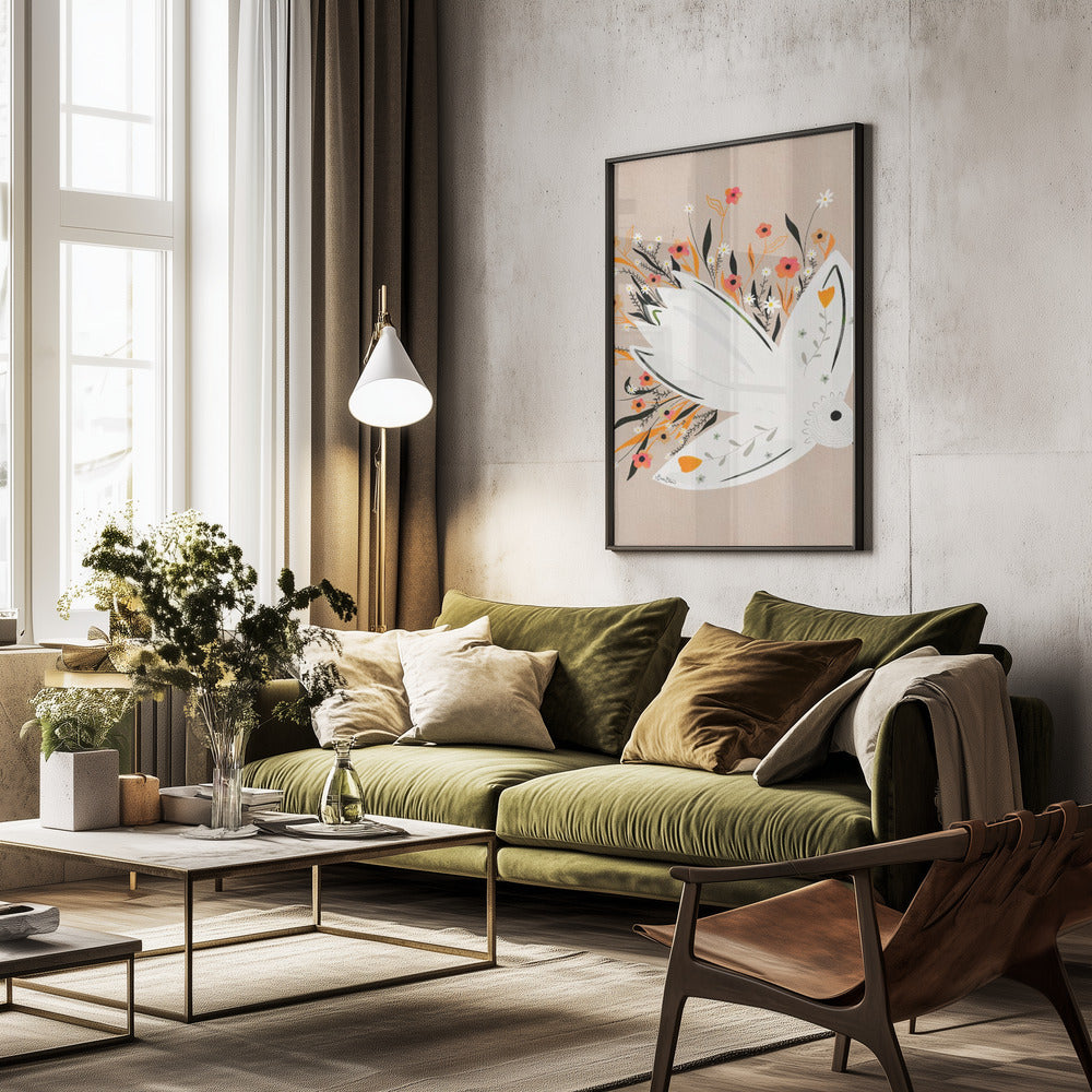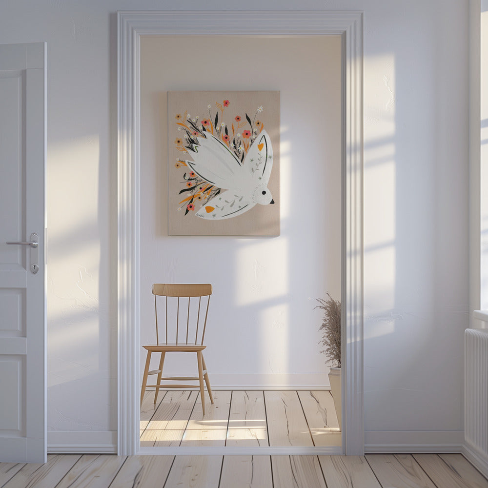 Ilustración de una gaviota entre flores · cuadro de decoración