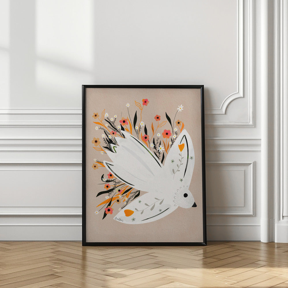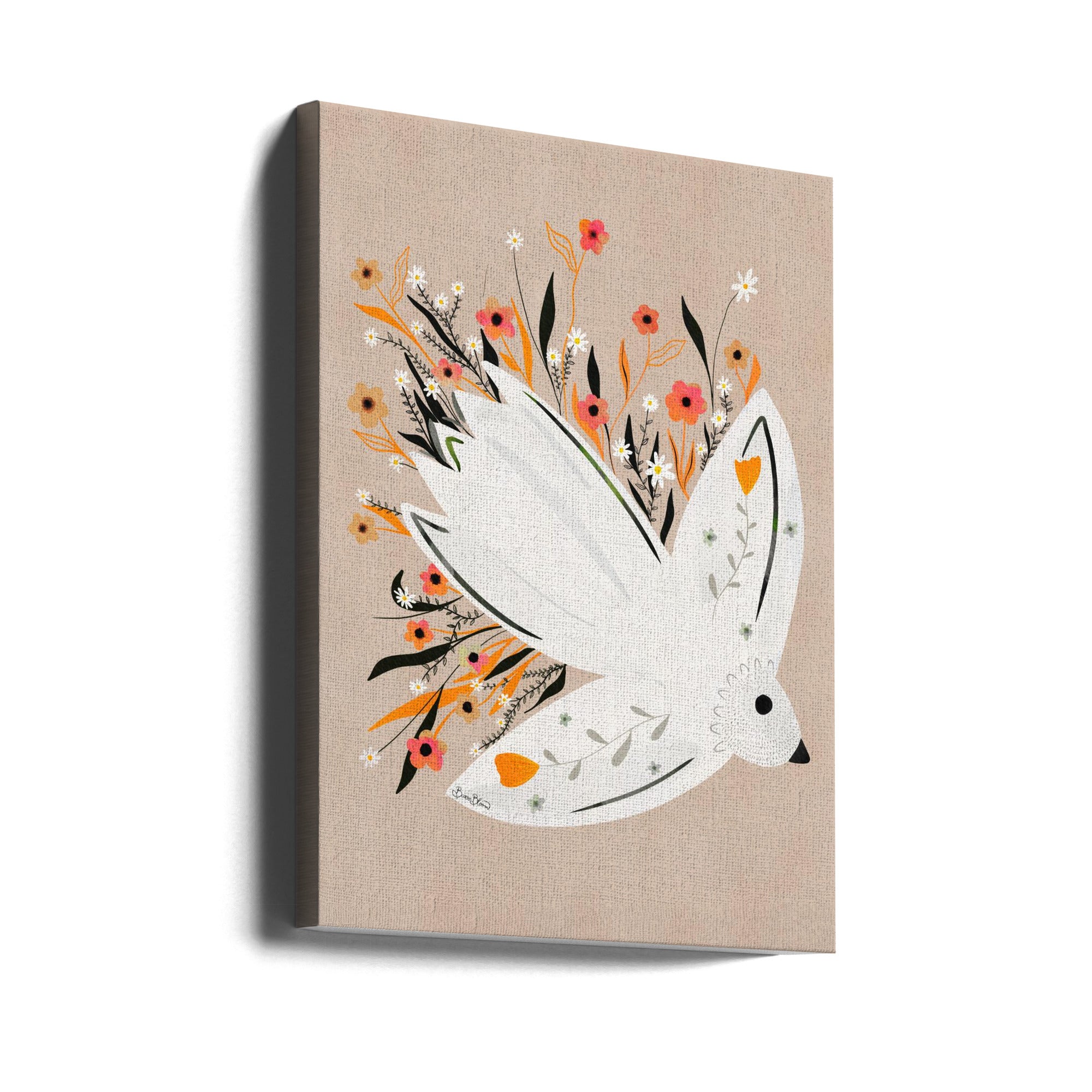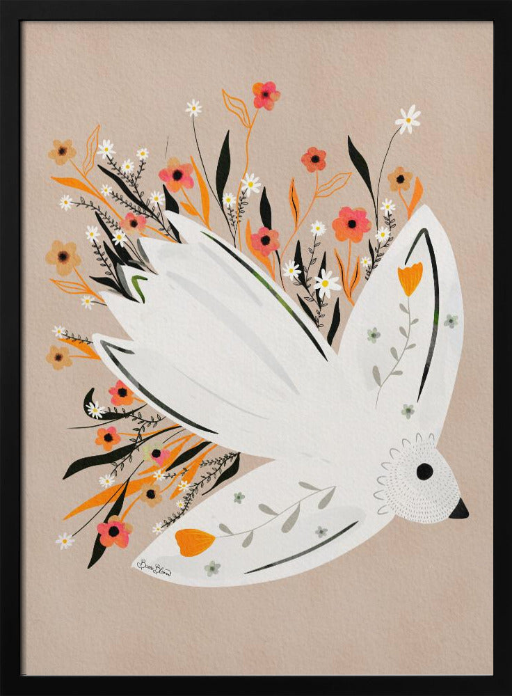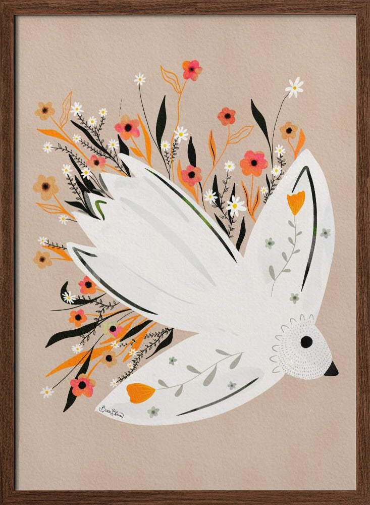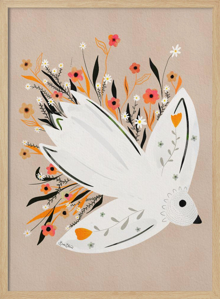 "Seagull in Flowers illustration" por Baroo Bloom. Impreso en papel mate de primera calidad, lienzo o papel de calidad de museo. Elija entre un marco de madera opcional.