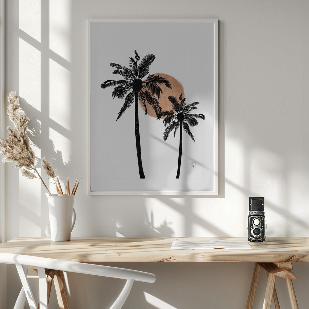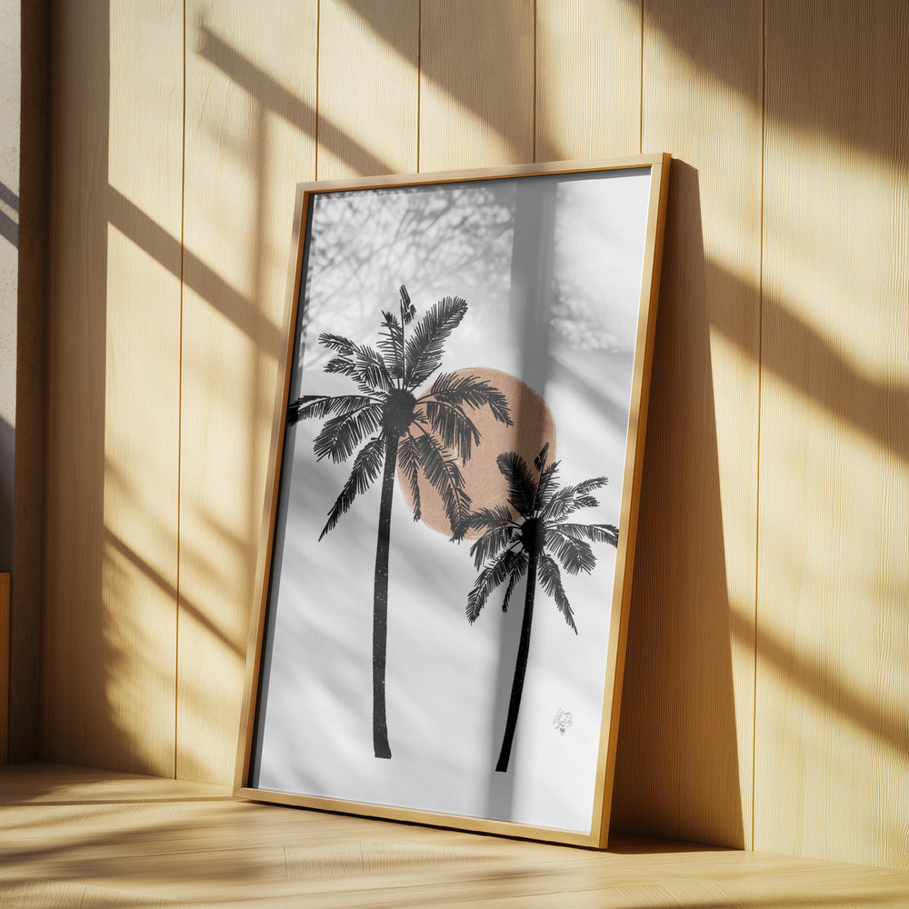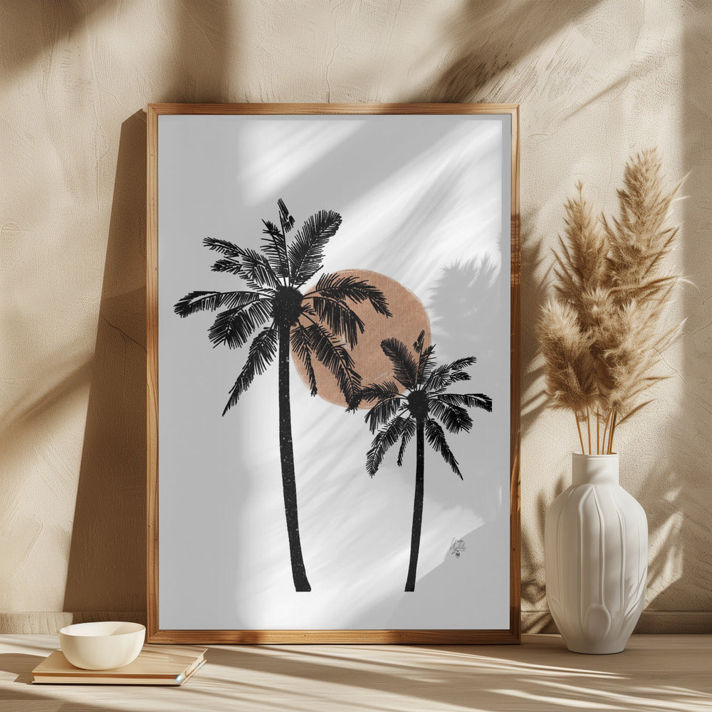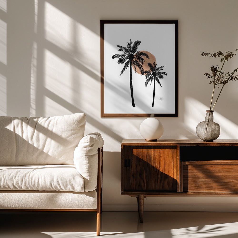 "White Background Palm Trees Erum Khalili.png" por Erum Khalili. Impreso en papel mate de primera calidad, lienzo o papel de calidad de museo. Elija entre un marco de madera opcional.
