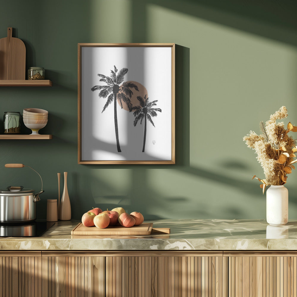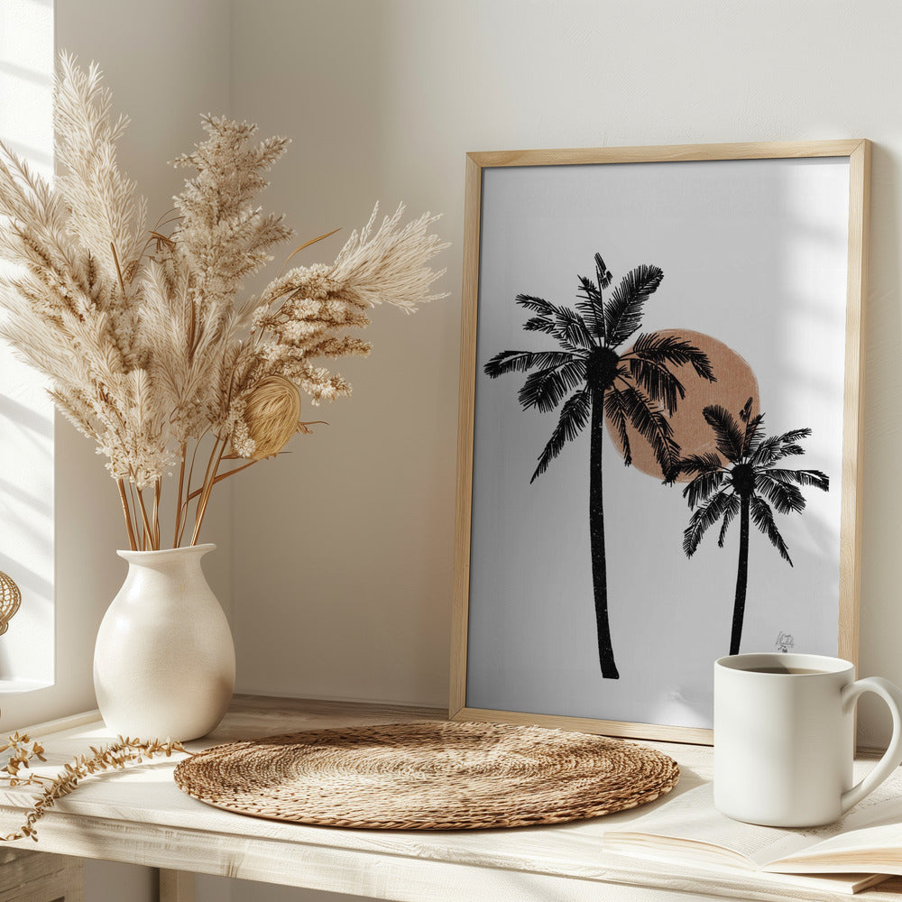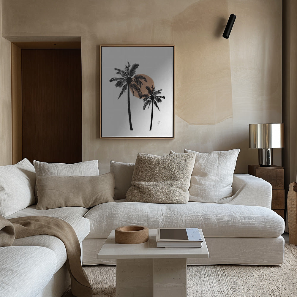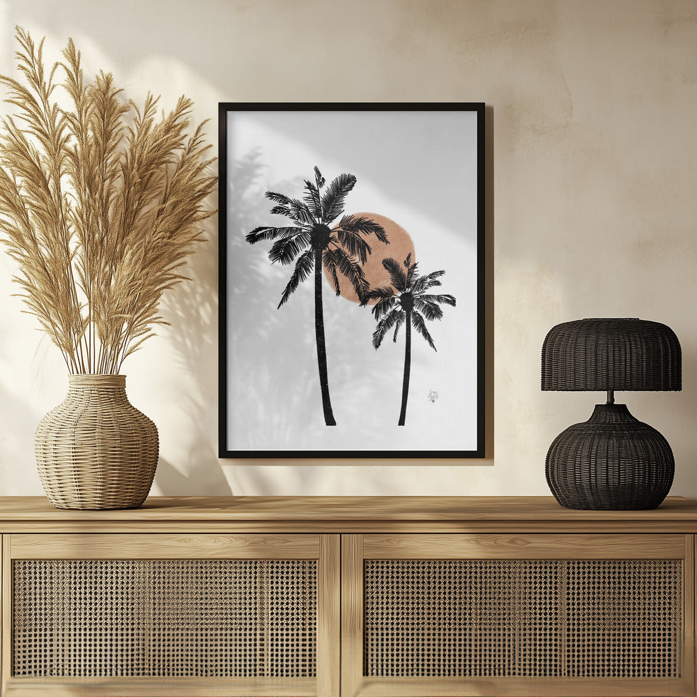 "White Background Palm Trees Erum Khalili.png" por Erum Khalili. Impreso en papel mate de primera calidad, lienzo o papel de calidad de museo. Elija entre un marco de madera opcional.