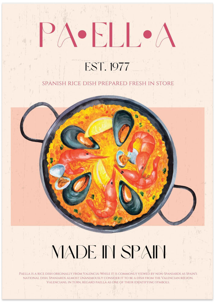 "Paella Delight" por Nazma Khokhar. Impreso en papel mate de primera calidad, lienzo o papel de calidad de museo. Elija entre un marco de madera opcional.