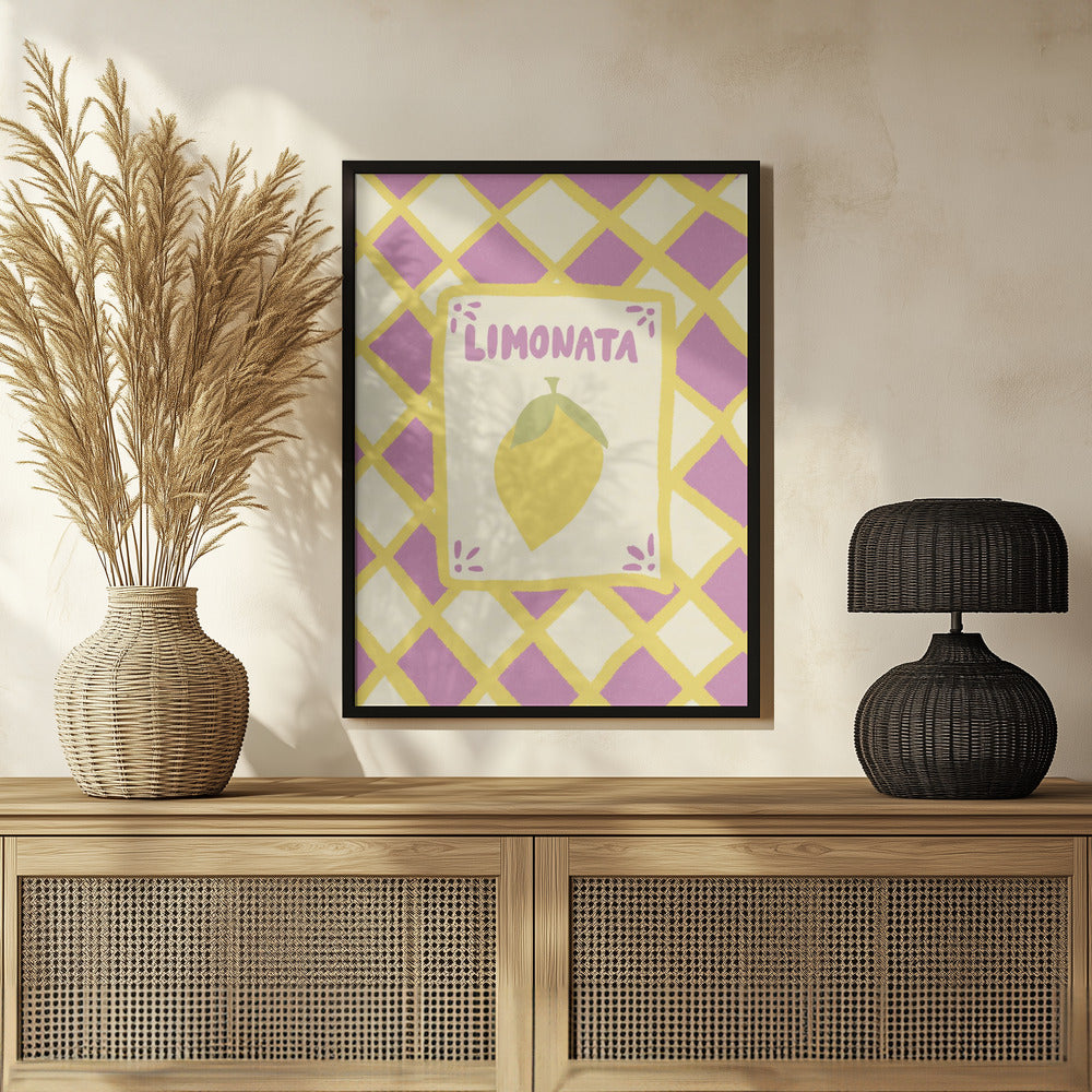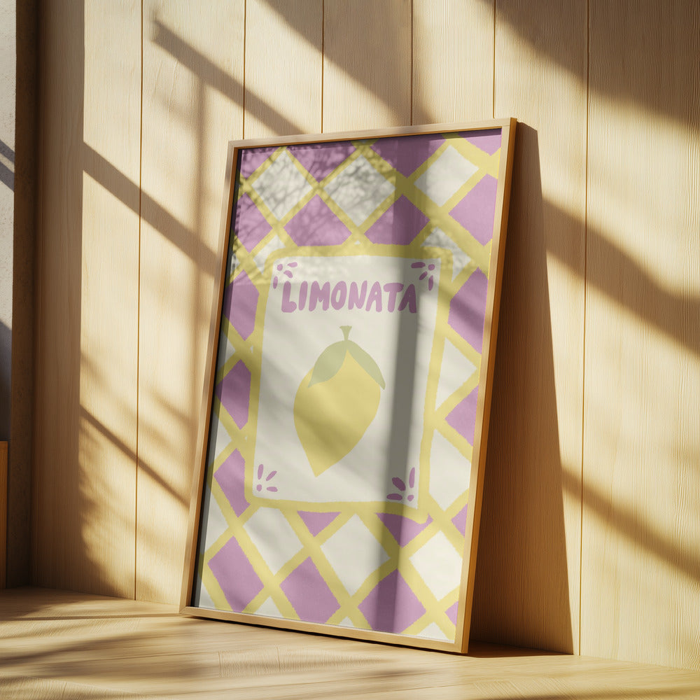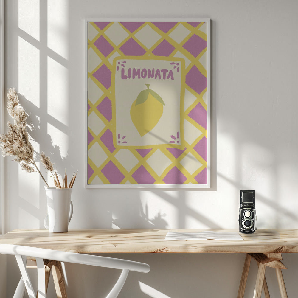 Tarjeta de limonada sobre fondo de mosaico morado · cuadro de decoración