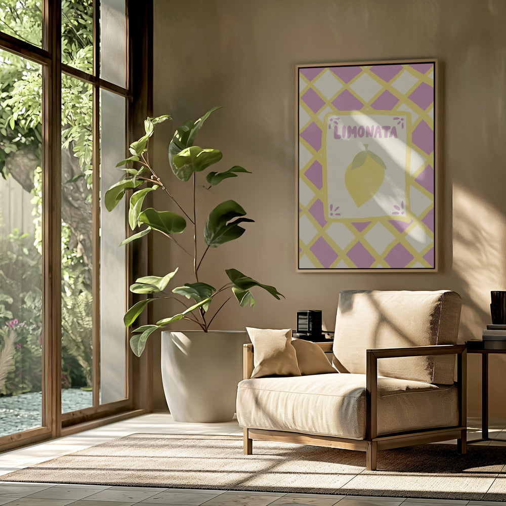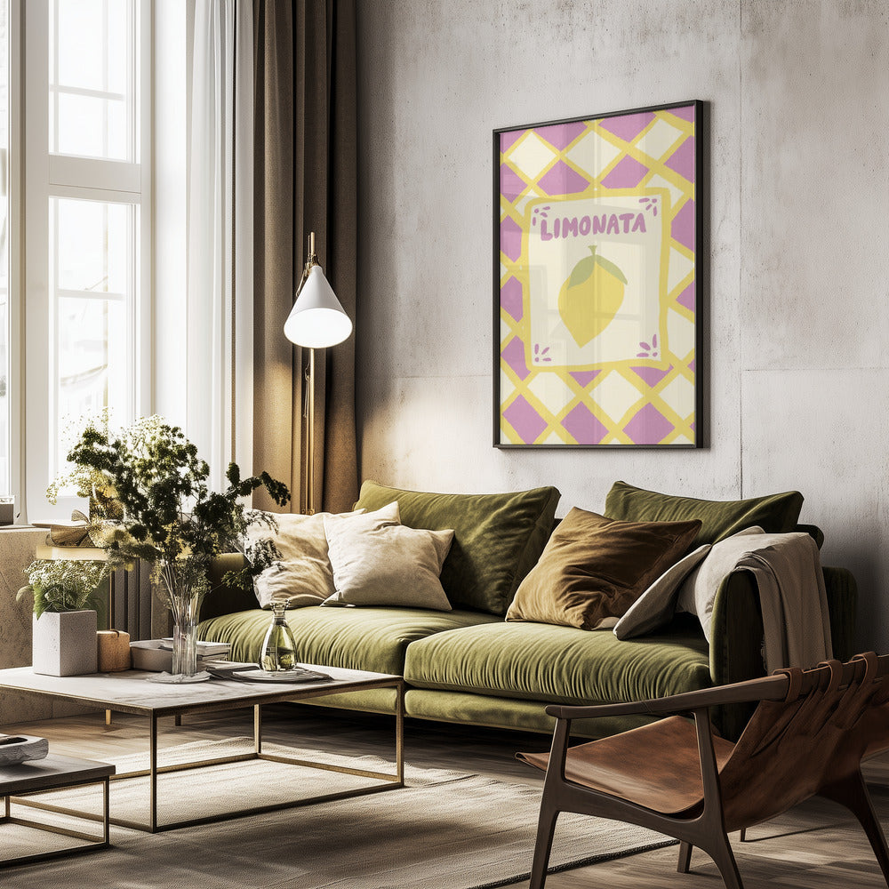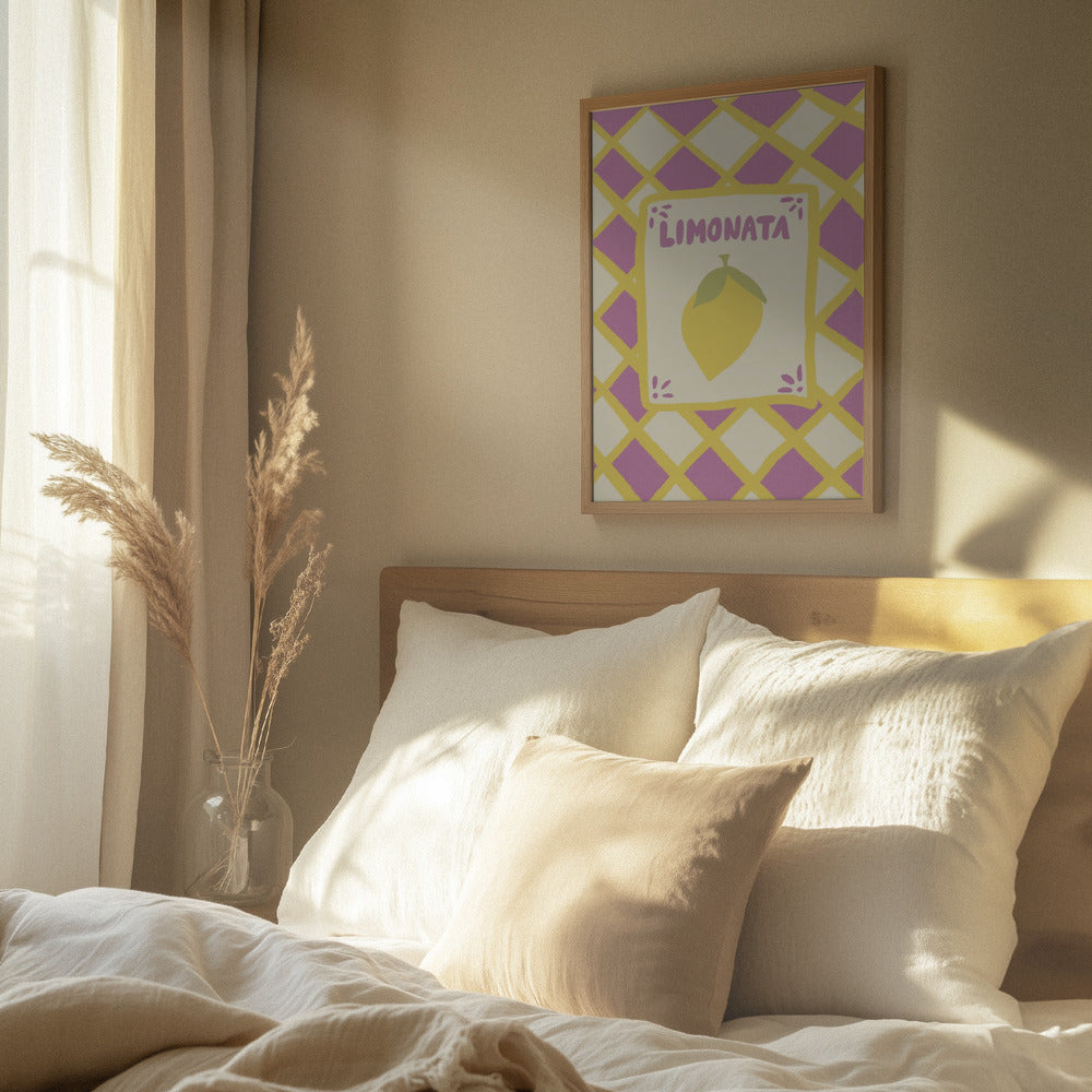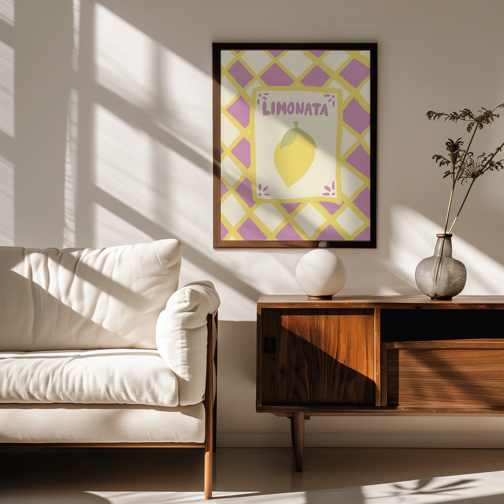 Tarjeta de limonada sobre fondo de mosaico morado · cuadro de decoración