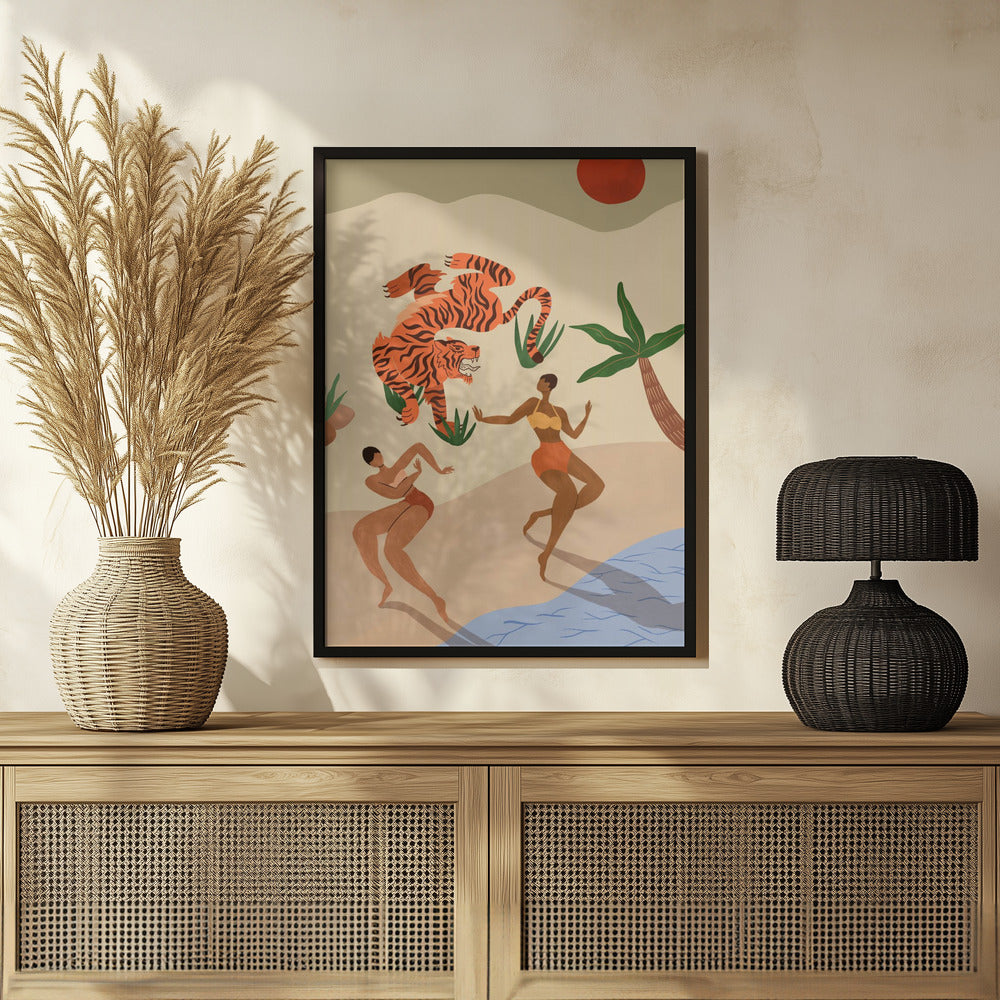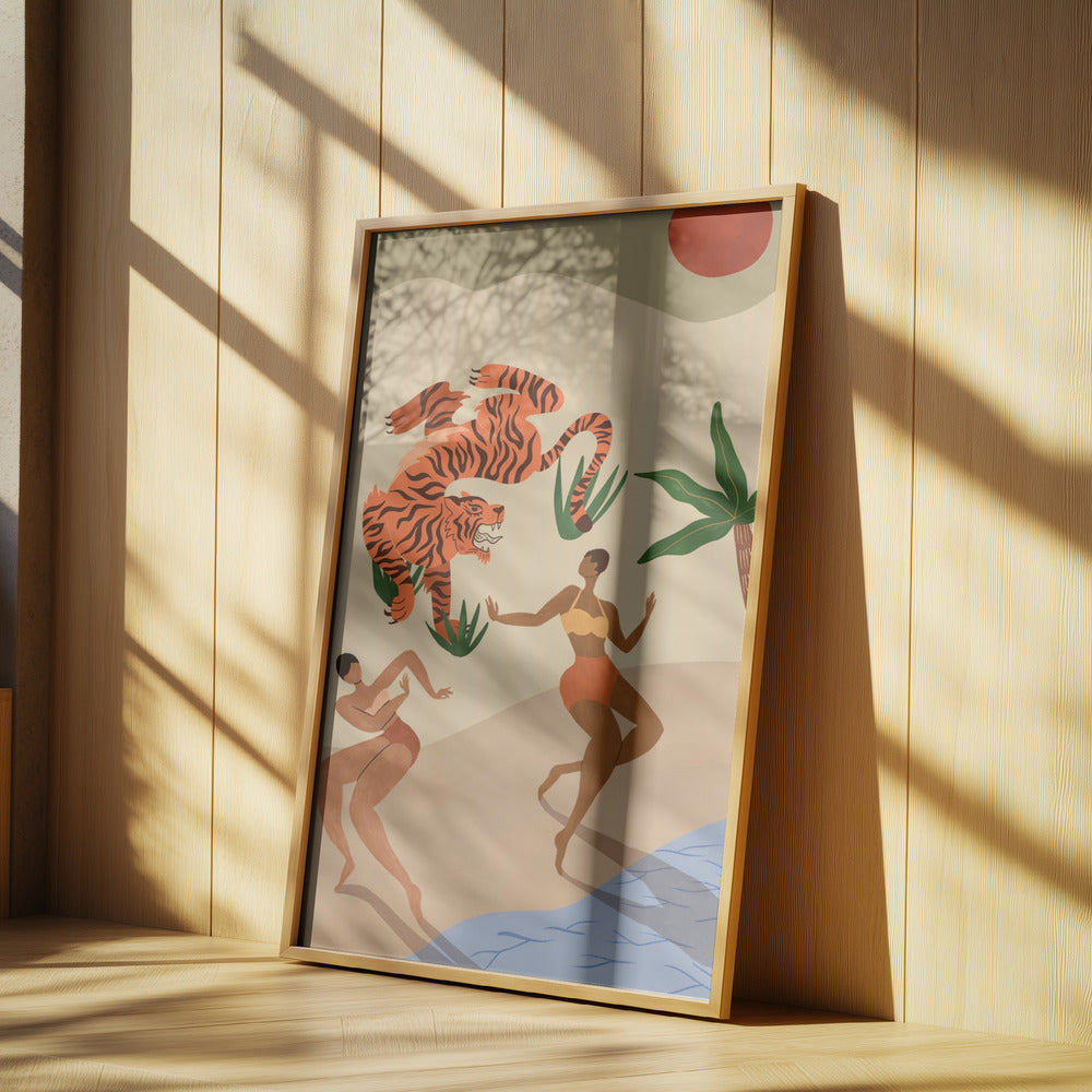 "Dancing Tiger" por Arty Guava. Impreso en papel mate de primera calidad, lienzo o papel de calidad de museo. Elija entre un marco de madera opcional.