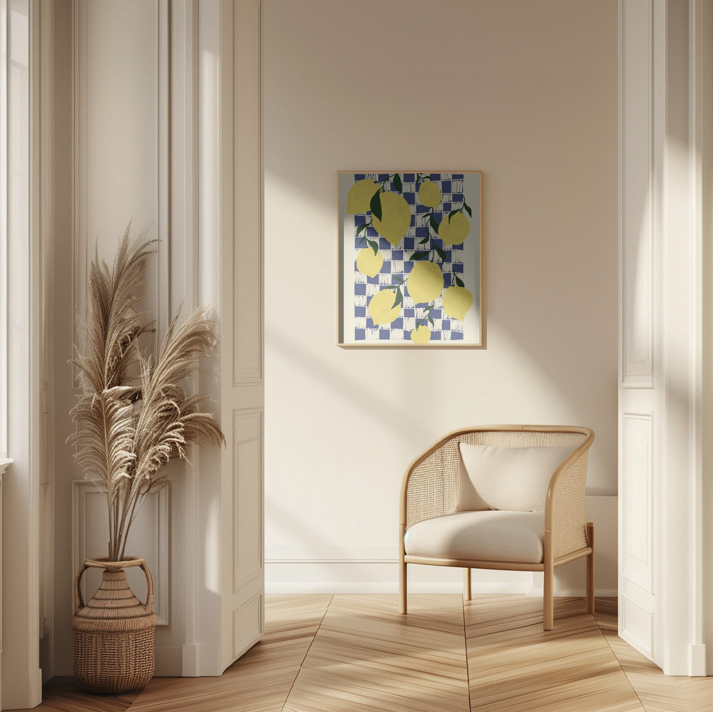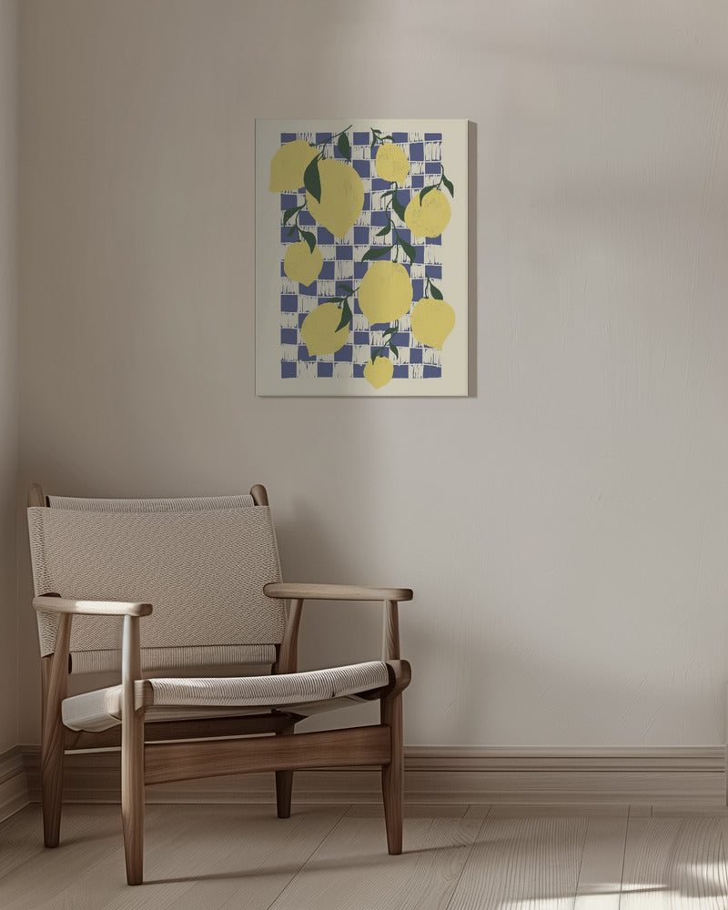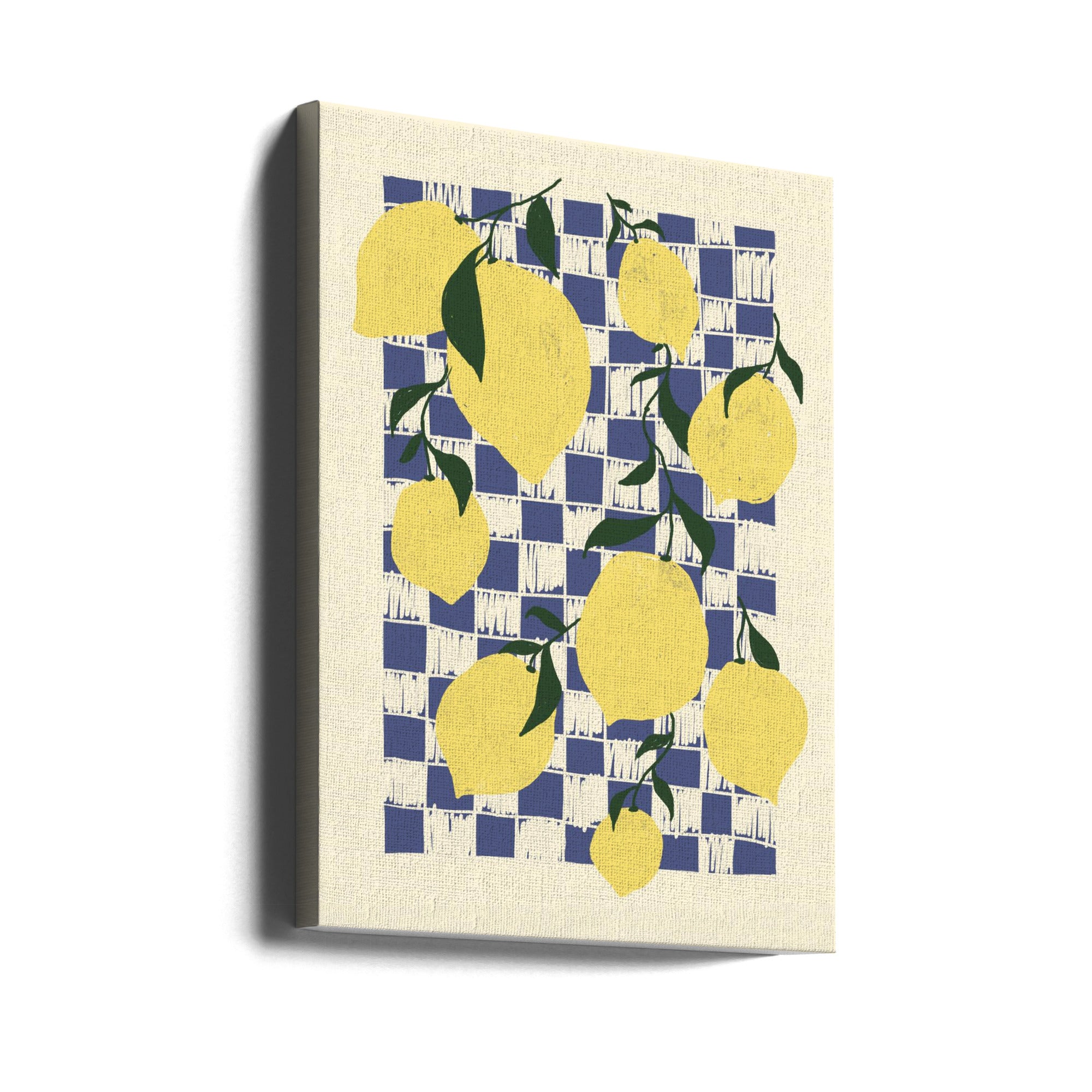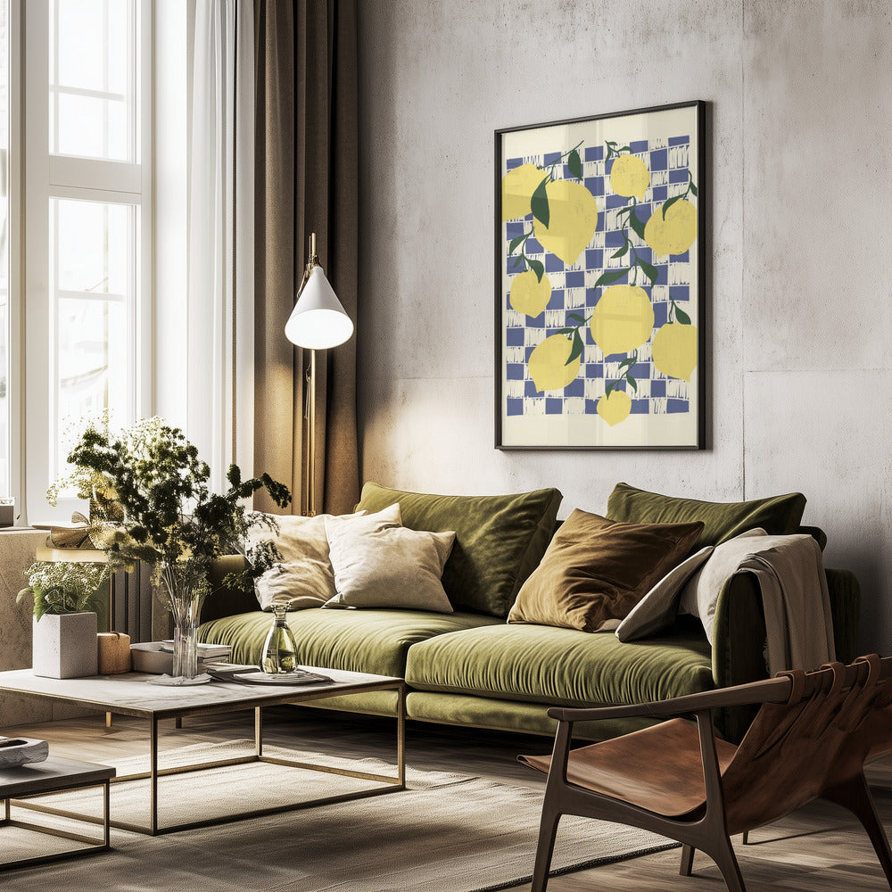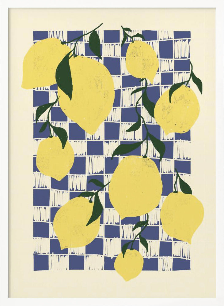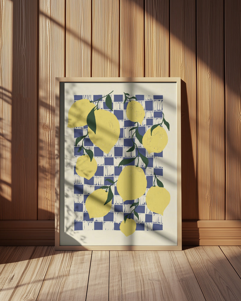 Un montón de limones sobre un fondo de azulejos azules · cuadro de decoración