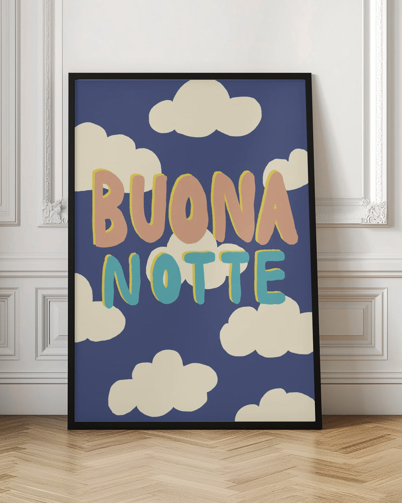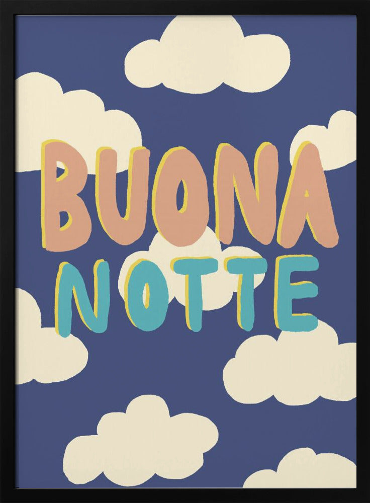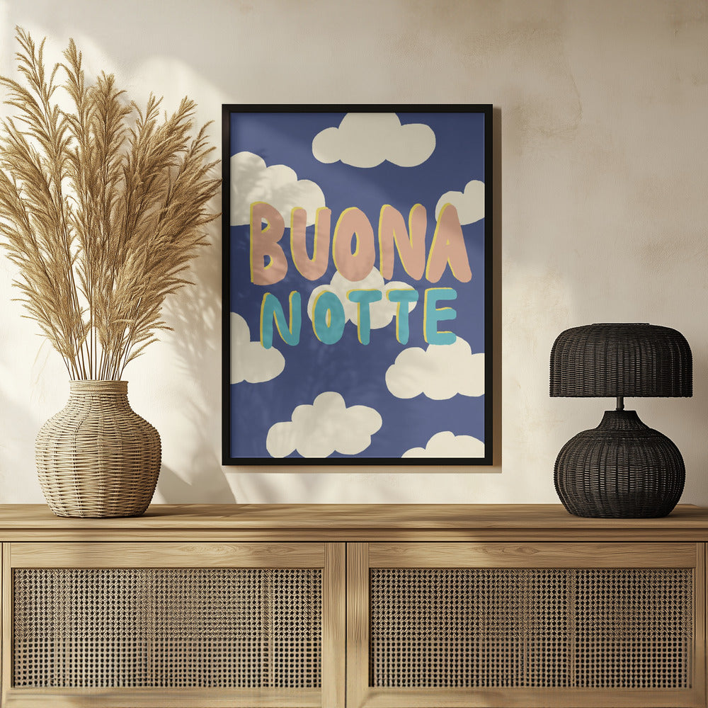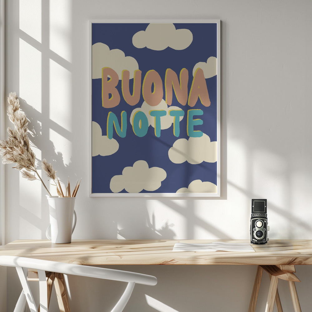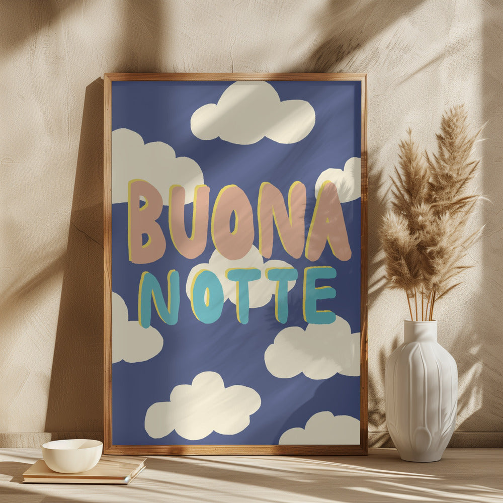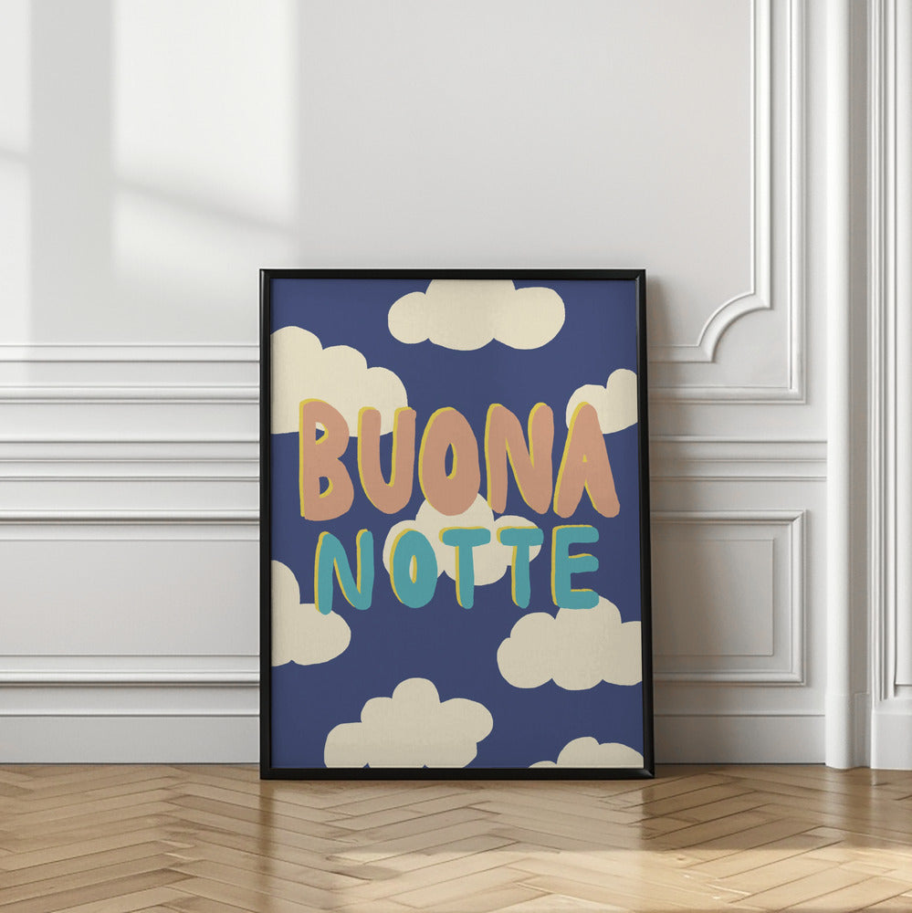 "Poster Buona Notte Up" por Studio Dolci. Impreso en papel mate de primera calidad, lienzo o papel de calidad de museo. Elija entre un marco de madera opcional.