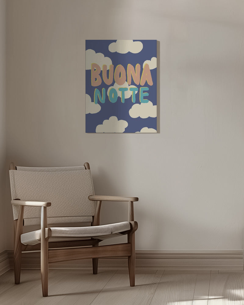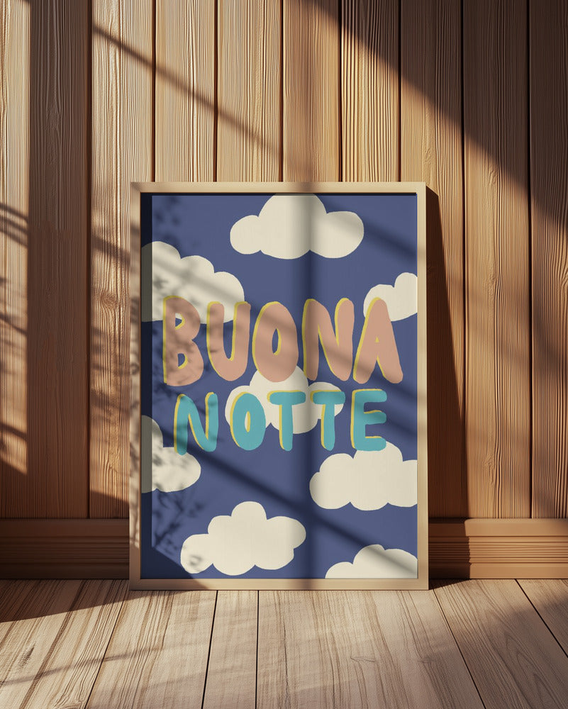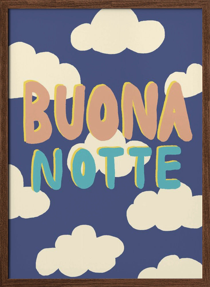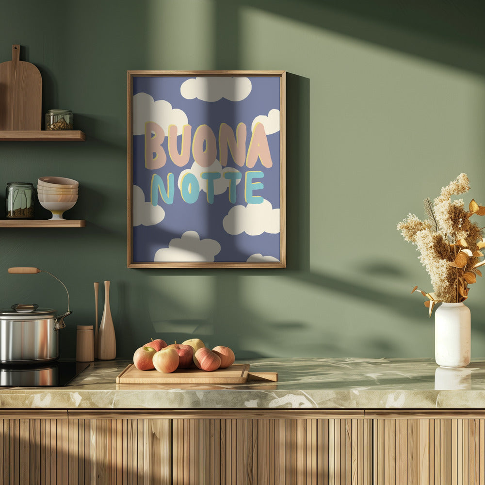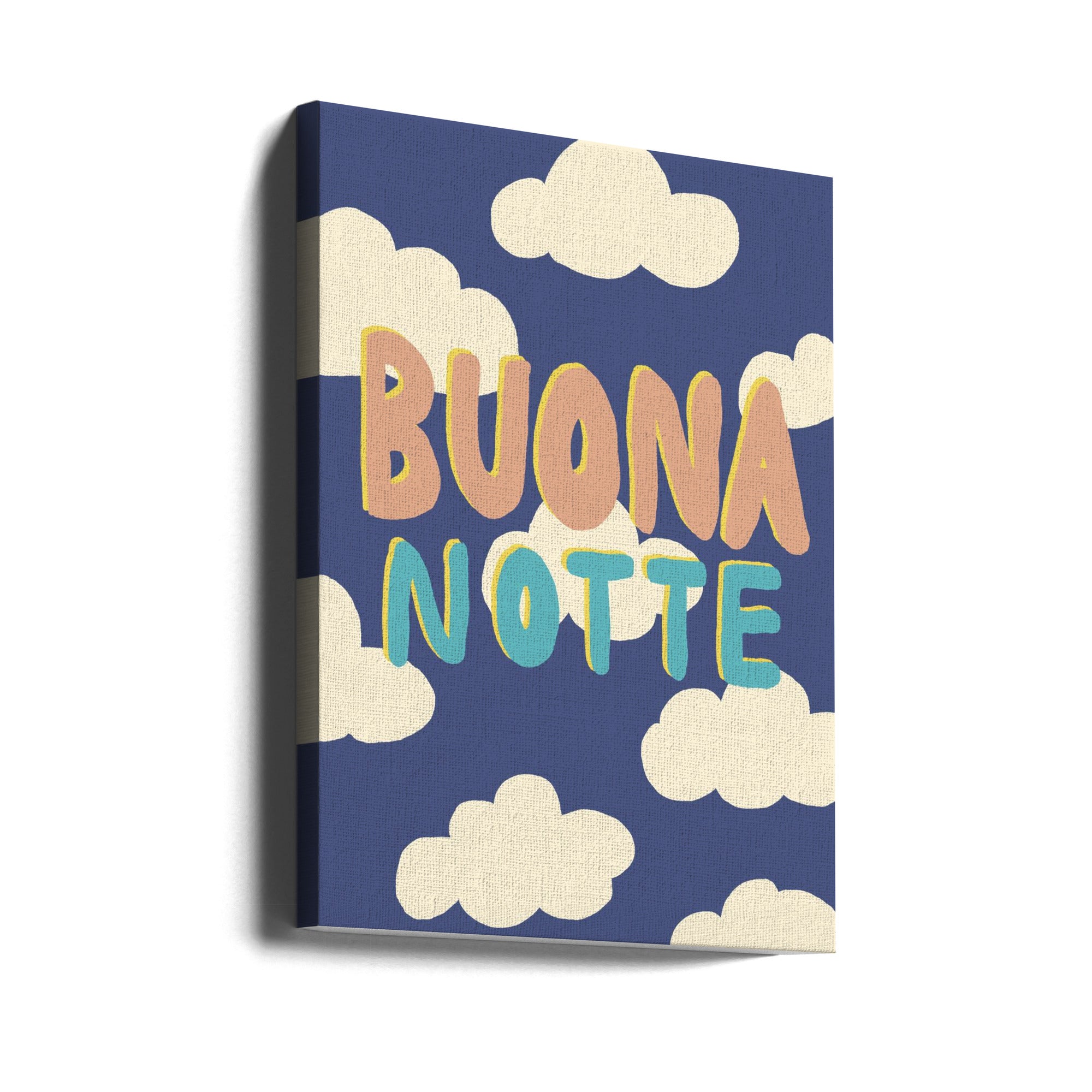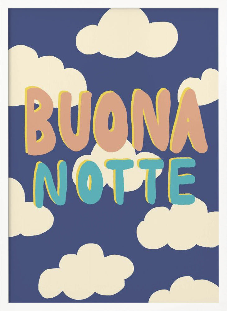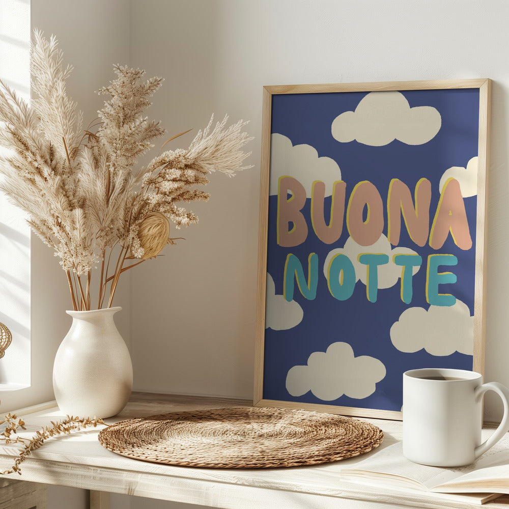 "Poster Buona Notte Up" por Studio Dolci. Impreso en papel mate de primera calidad, lienzo o papel de calidad de museo. Elija entre un marco de madera opcional.