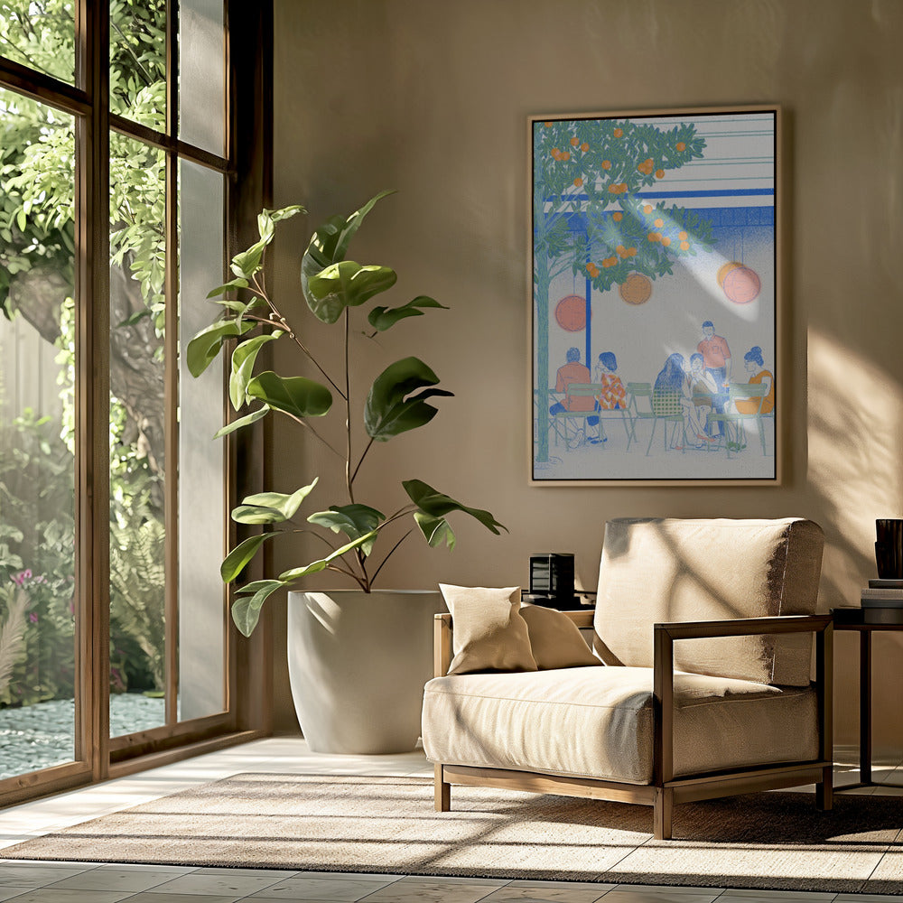 Imprimimos directamente en un lienzo de mezcla de algodón y poliéster de 300 g/m² de primera calidad. Luego, lo estiramos sobre un marco de 2 cm de grosor. Cada lienzo incluye un kit para colgarlo.