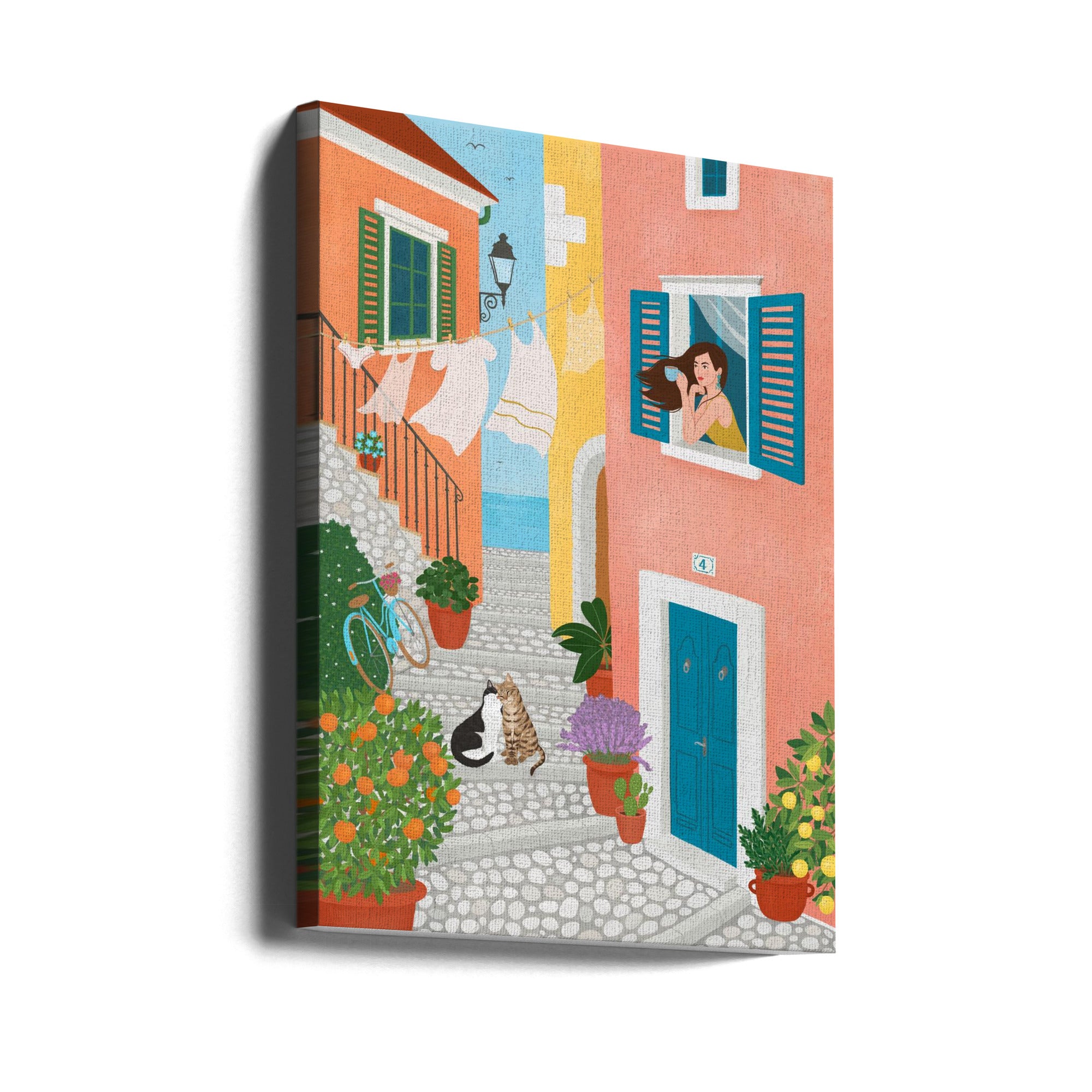 Imprimimos directamente en un lienzo de mezcla de algodón y poliéster de 300 g/m² de primera calidad. Luego, lo estiramos sobre un marco de 2 cm de grosor. Cada lienzo incluye un kit para colgarlo.