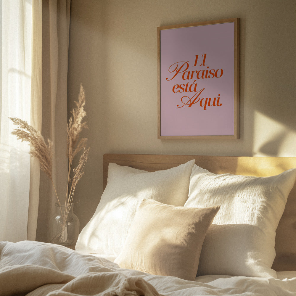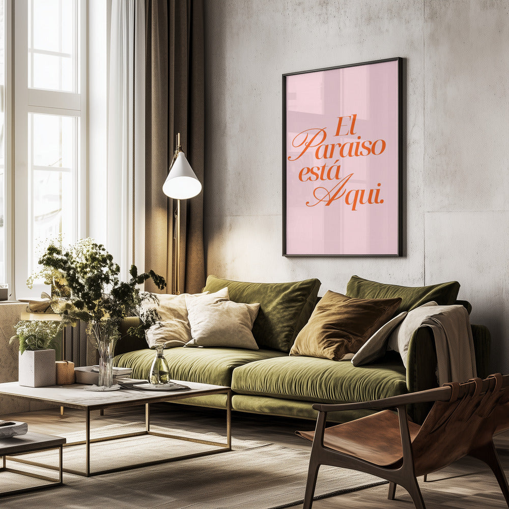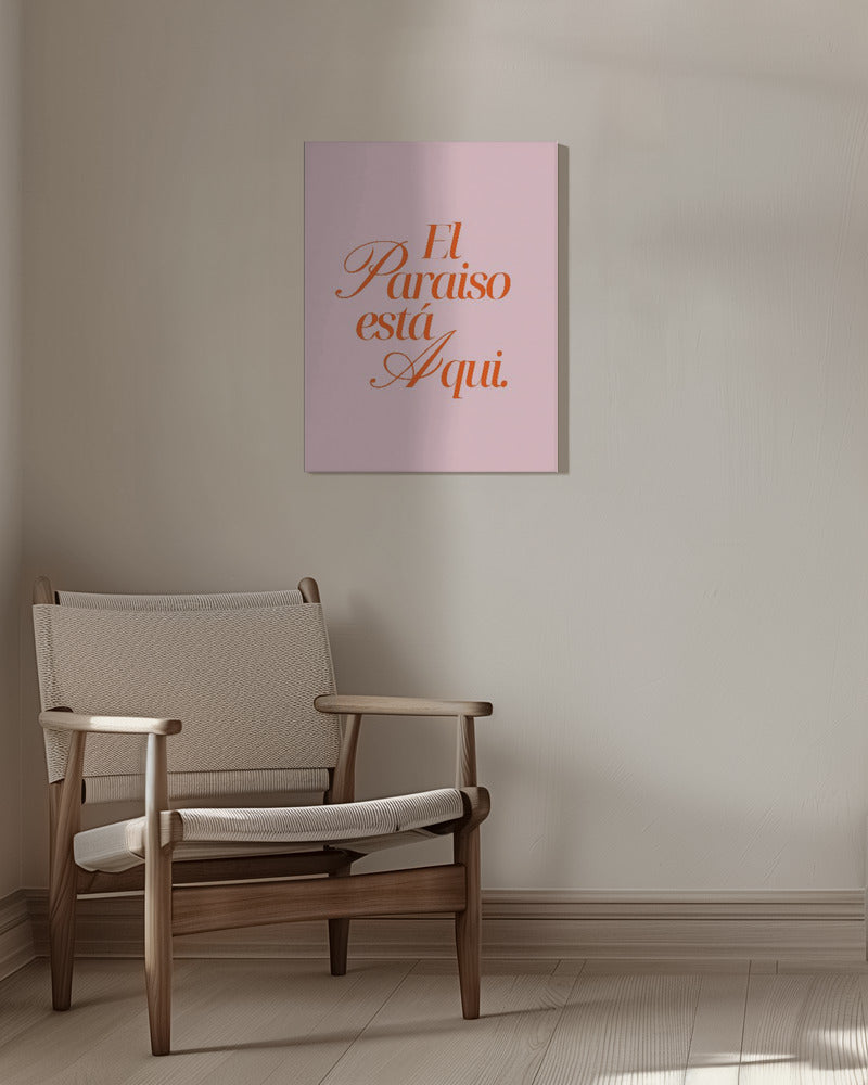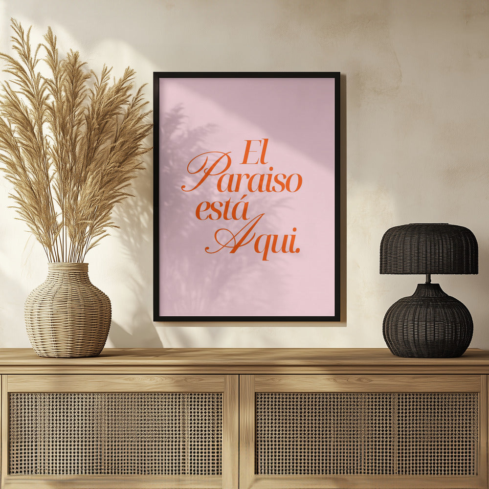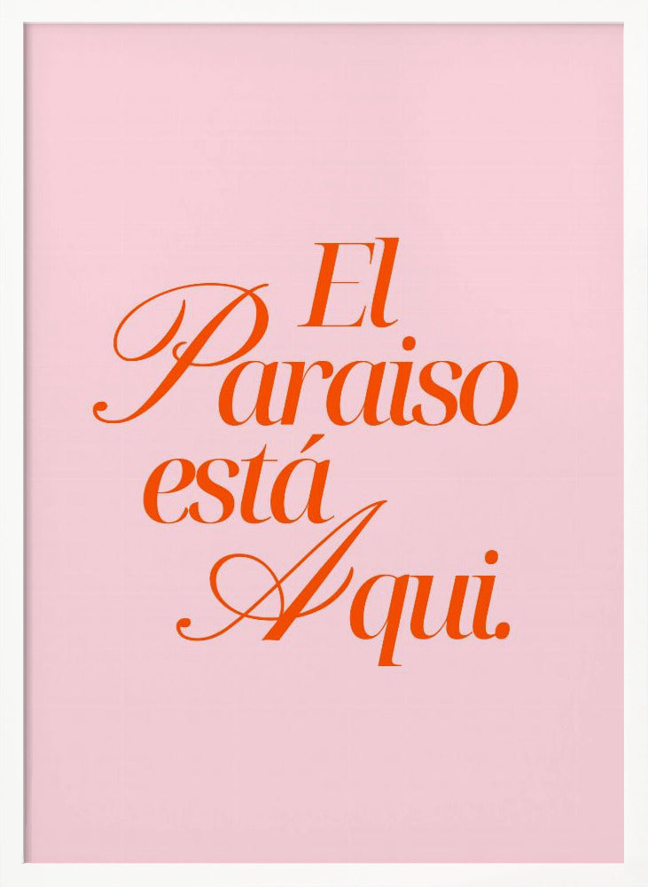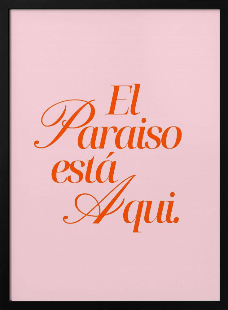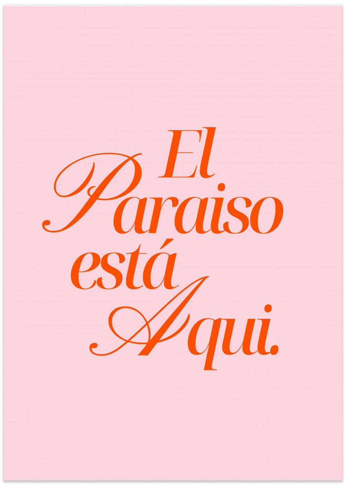 El paraíso está aquí en naranja sobre un fondo rosa · cuadro de decoración